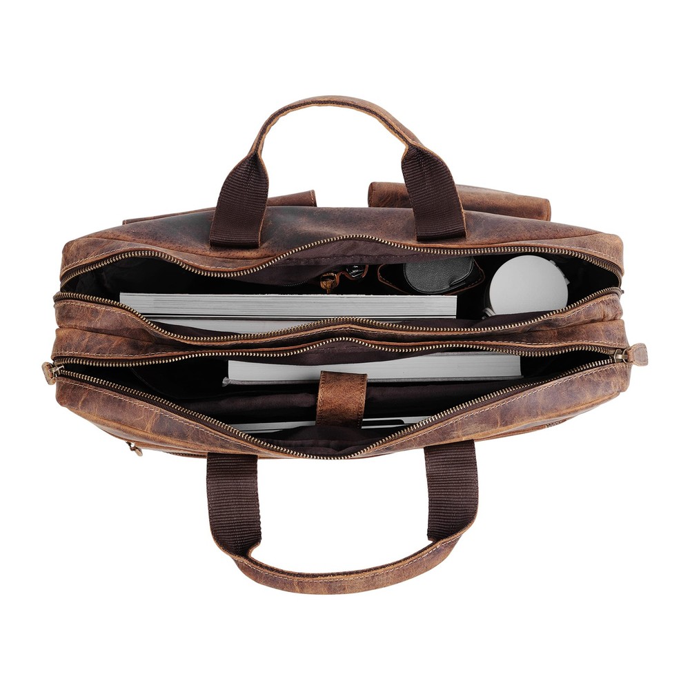 Number Of Compartments: 2 Material: Leather Theme: Occasion gtin13: Does not apply Embellishment Feature: Zipper Model Name: Code 81 (16 Inch) Strap Type: Shoulder Target Gender: Unisex Department: Unisex-Adult Item Shape: Rectangular Prism Brand: Does not apply Fabric Type: Leather Package Dimensions LxWxH: 19.92x18.19x3.5 Inches Color: Brown Weight: 3.22 Pounds Pattern: Solid Number Of Handles: 1 Type: Does not apply Pattern Type: Solid Age Range Description: Adult Seasons: All Strap Color: Black Import Designation: Imported Closure Type: Zipper Size: 16 Inches UPC: Does not apply Unit Count: 1.0 Number Of Sections: 5 Handle Type: Top Handle Number Of Pockets: 4 Outer Material: Premium Buffalo Leather Capacity: 8.0 Inner Material: Cotton Blend Included Components: Messenger Bag Handbag Silhouette: Briefcase Style: 16 Inches Pocket Description: Jetted Pocket Size Info Display Name: 16 Inch Briefcase