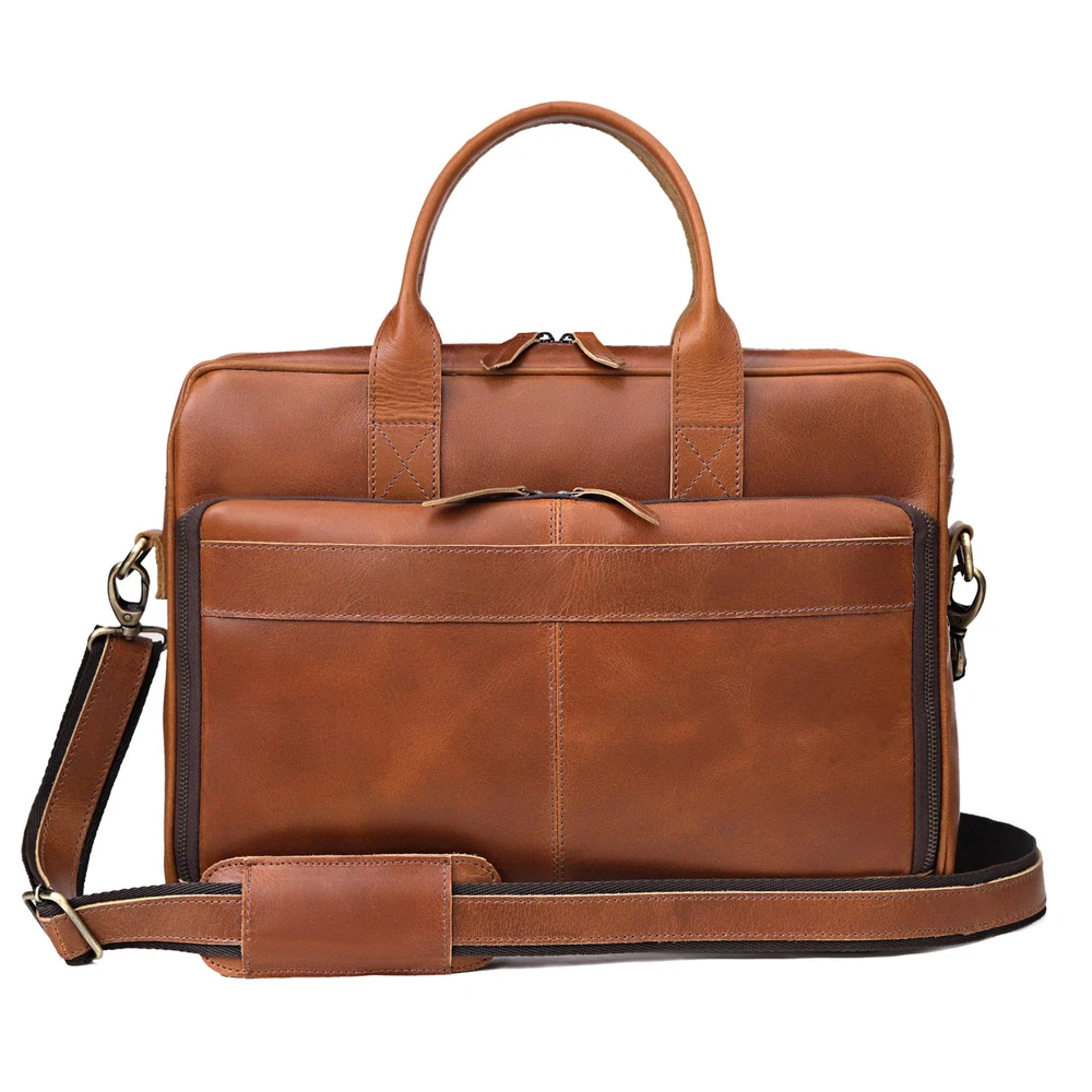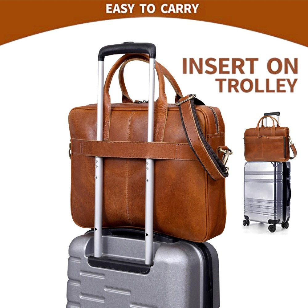 Vintage Couture Leather Messenger Bag for Men Leather Laptop Bag Shoulder Bag If you love products that leave very little impact on the environment, the range of leather goods from Vintage Couture will leave you impressed! Crafted by the desert people of Rajasthan, India, Vintage Couture's handmade leather bags and accessories are carefully crafted using traditional techniques and by skilled artisans to ensure absolute perfection. These leather goods are made from goat and buffalo leather using 100% environment-friendly methods, making them completely recyclable. Each of these vintage leather pieces boasts a rich artistry and craftsmanship. Although the goods are handcrafted, they don’t compromise on style. Made from the finest Hunter brown buffalo leather and lined with high quality canvas this bag is hand crafted by artisans working with leather for decades TROLLEY COMPATIBLE : Our bag comes with a trolley Compatible strap so you just relax and strap it to your suitcase while at the airport or travelling . DIMENSION : 13 X 18 X 5 (height , width, depth) . Has an outer pocket that can fit about an iPad and other useful stuff easily laptop easily. The bag can used as a breifcase , Laptop messenger bag , office satchel . MUTLIPLE SECTIONS : With Multiple Internal sections for Cell Phones, Calculator, Slots for cards , pens and Zipper compartments including one internal and one back zipper , you can organise your stuff as you like . PERFECT USE :With a mutlipurpose use and a classy distressed Vintage inspired look which never goes out of style , This bag is a great gift idea for Fathers Day , Birthdays , Valentines Day , Christmas, Graduation, Back To College Or Any Occasion Which Calls For A Gift . Makes a great gift for professionals, artists , students and all sorts of officials. The bag can be used as a Leather messenger bag for men and women ,laptop bags briefcase , college bag, meeting bag, gift idea.