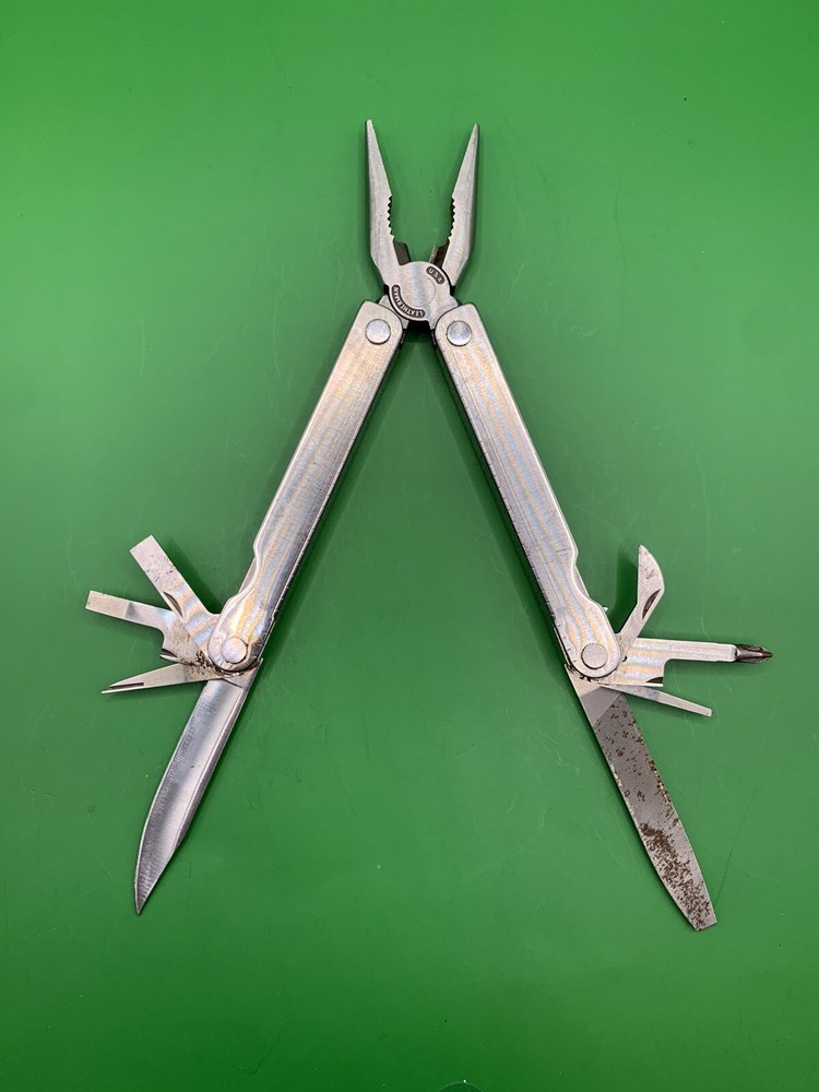 Used Leatherman multi tool with sheath. Has some wear on the handles and the blades may need to be sharpened. Could use some oil and a little cleaning. See pictures for overall cosmetic condition. By purchasing you affirm that you are of legal age and aware of all applicable laws.