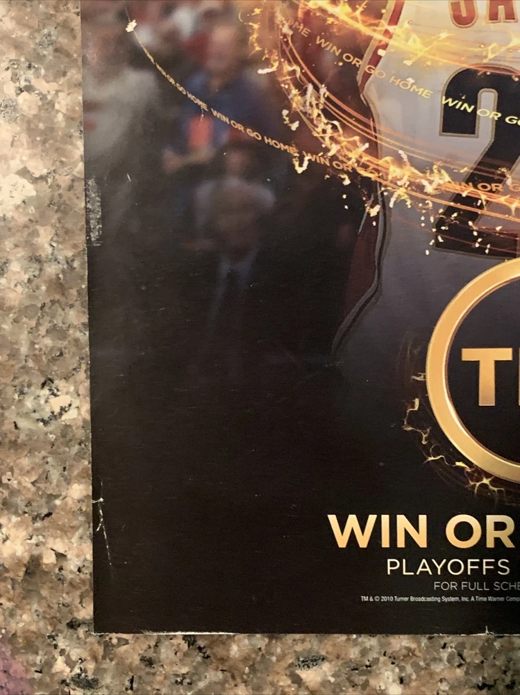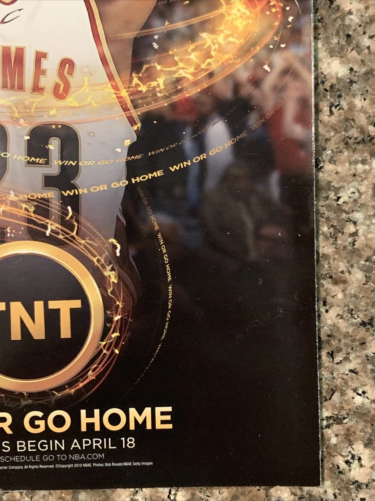 Own a piece of NBA history with this Lebron James NBA Playoffs PRINT AD from 2010. This colorful magazine print ad is a must-have for any NBA fan or collector. The ad promotes the TNT Win Or Go Home TV Promo Advertising during the NBA playoffs. The ad features Lebron James, a prominent player in the NBA during that time. The ad is in good condition and will make a great addition to any collection. Don't miss out on this unique piece of NBA advertising history. Original full page magazine print ad.