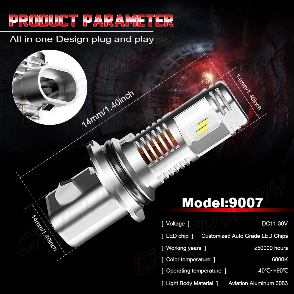Superseded Part Number: Headlight High Beam Low Beam Foglight Replacement Brand: CHUSYYRAY Bulb Fitment Code: HB5 (9007) EAN: 702756928309 Material: Aluminum alloy Easy Installation: Direct Replacement of Your Stock Bulbs Features: Quick Installation , Plug and Play,Fanless Model: LED Headlight Fog Light Conversion Kit Headlight Bulb Type: 9007/HB5 Country/Region of Manufacture: China Heat Control: Aircraft Solid Aluminum Body,Ballasts Size: the same as the car original light Beam Angle: Spotlight Items Included: Bulbs Number of Bulbs: 2 Performance Part: Yes gtin13: 702756928309 Bulb Shape Code: 9007(HB5) UPC: 702756928309 Lens Color: Clear Mounting Style: play & plug Light Color: White Wattage: 50W Voltage: 12V Fitment Type: Direct Replacement Vintage Part: No Design: 1:1 Size Manufacturer Part Number: CHUSYYRAYQ10-9007/HB5 Lumens: 6000 lm More LED Kit We Have 2: 9005 9006 9007 H11 H8 H9 H13 9008 H4 9003 Universal Fitment: No Other Part Number: Super Bright Xenon White color LED light bulbs OE/OEM Part Number: LED Headlight Kit Beam Pattern: 360° Adjustable Manufacturer Warranty: 2 Years More LED Kit We Have 1: H10 9145 9140 9011 9012 HB1 HB2 HB3 HB4 HB5 Placement on Vehicle: Front, Left, Right Type: Headlight Assembly Bulb Type: Headlight Lighting Technology: LED Color Temperature: 6000K Interchange Part Number: 9007/HB5 High/Low Beam Housing Color: Silvery