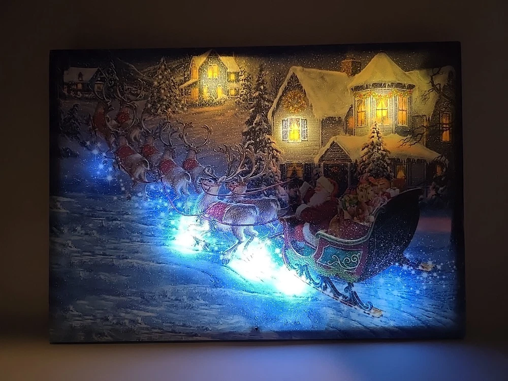 Led Lighted Christmas Wall Canvas Light Up Art Home Decor, Battery 14×10