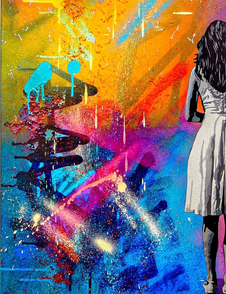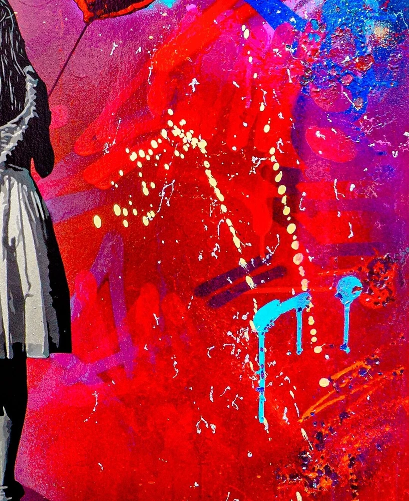 Lee Henderson - If I Gave You My Heart , Original Acrylic Painting A stunning original acrylic painting by Lee Henderson (1979) , titled “If I Gave You My Heart” . This artwork is a vibrant reinterpretation or response to Banksy’s iconic Girl with Balloon . With its bold, multicolored abstract background and emotional depth, Henderson captures themes of love, vulnerability, and hope in his distinctive contemporary style. • Object: Painting • Technique: Acrylic on canvas • Dimensions: 61 × 61 × 3 cm • Year of Production: 2023 • Signature: Hand-signed by the artist • Condition: New • Framing: Sold unframed Details: In this piece, Henderson reimagines the timeless motif of a girl holding a balloon, presenting a red heart-shaped balloon against a dynamic and colorful backdrop. The textured canvas and graffiti-inspired splashes of color bring an urban, raw energy to this painting, making it a standout piece for collectors of modern and street art. This original painting is a one-of-a-kind work, perfect for anyone looking to add a bold and emotional statement piece to their collection. It will be securely packaged to ensure safe transportation.