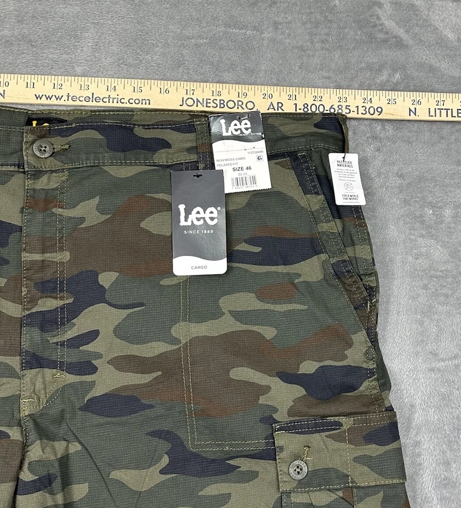 NEW Lee Cargo Shorts Mens 46 Moss Camo Ripstop Stretch Relaxed Fit Active Hike Please see measurements in photos. I ship next business day, but sometimes same business day and Saturday if order is paid for early enough. Please reach out if you have any questions. I am open to offers! Feel free to check out other items in my store. Thanks!