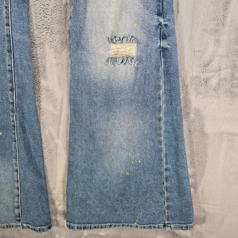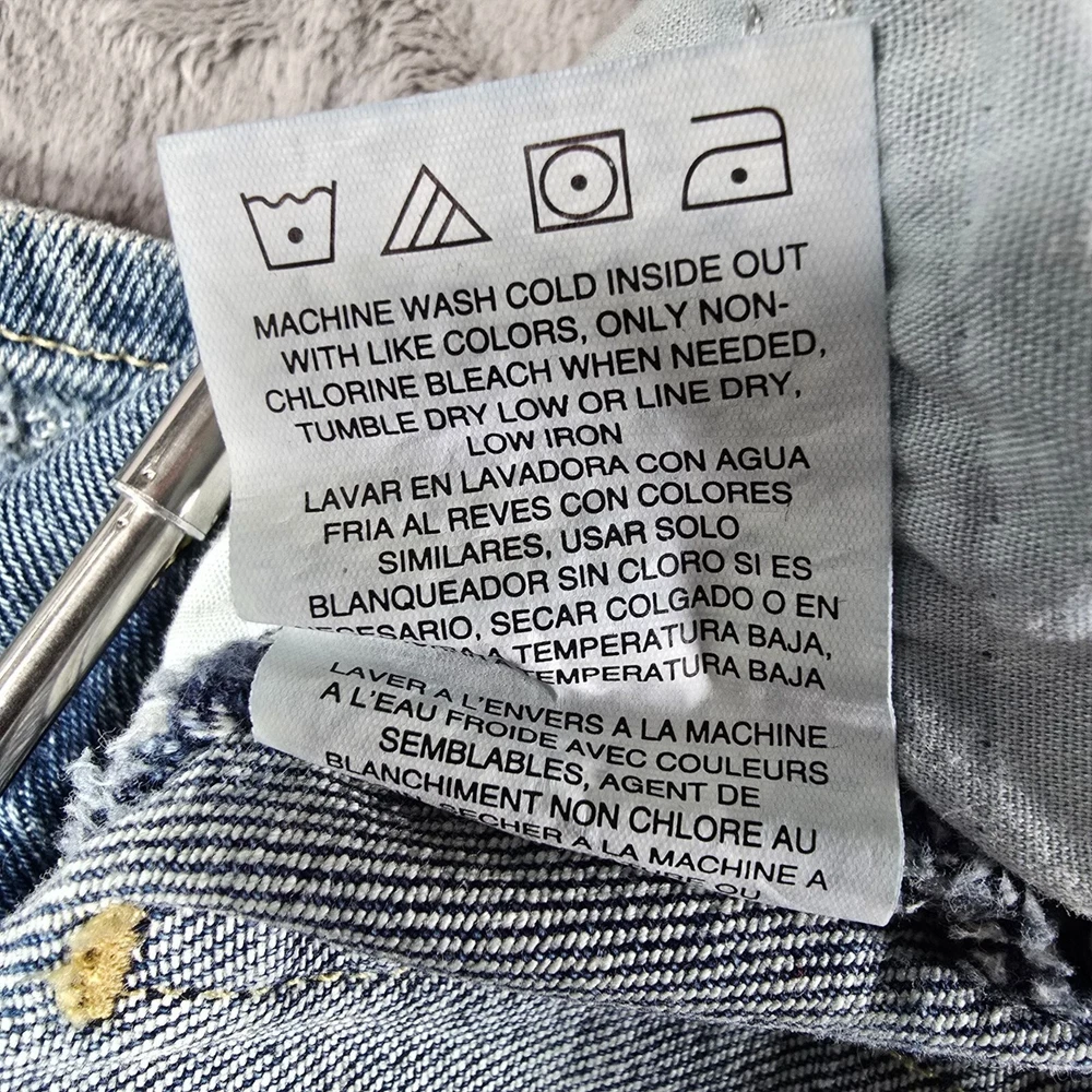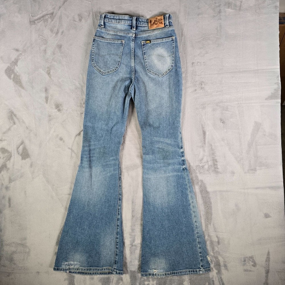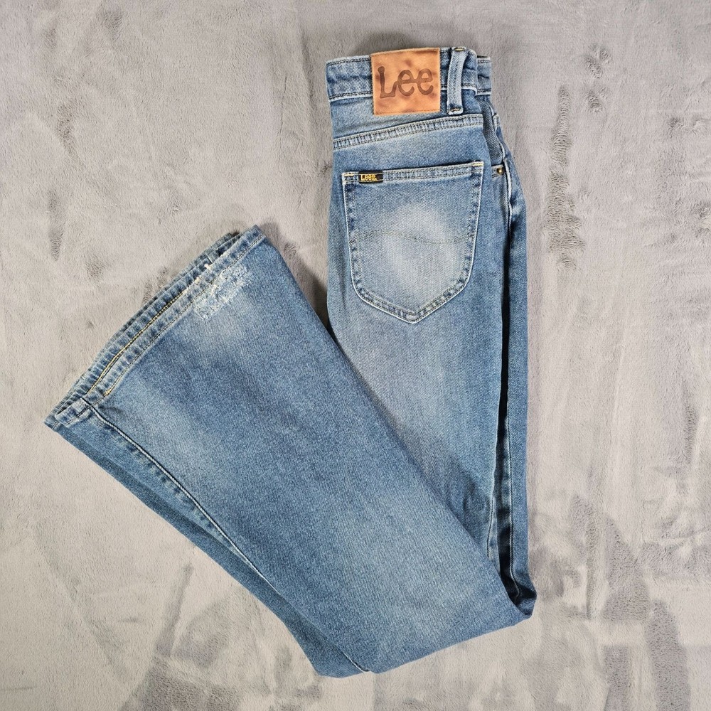 Condition Notes: Fair/thrashed used condition. Heavy whiskering in thigh area. Heavy fading on legs with uneven fade spots at bottom near cuffs. Heavy oblong fade pattern on back right pocket. Fraying at cuffs. Hole in left knee. Grass and dirt stains throughout. Specks of yellow paint on front of legs. See photos. Product Notes: • Brand: Lee • Country of Manufacture Bangladesh • Decade of Manufacture: 2010s (the CA Identification number on the tag was registered in 2009, so we know these can be no older than 2009) • Material: 98% Cotton, 2% Spandex • Lee SKU: 3534725 • 5-Pocket Style • Flare leg design • YKK Zipper • Lee Leather patch on back • Perfect lived-in distressed/thrashed look and great retro vibes Tag Size: 34x34 Modern Measured Size: 32x31 Measurements: Waist: 24 inches Rise: 10.5 inches Inseam: 31.5 inches Leg Opening: 11.5 inches