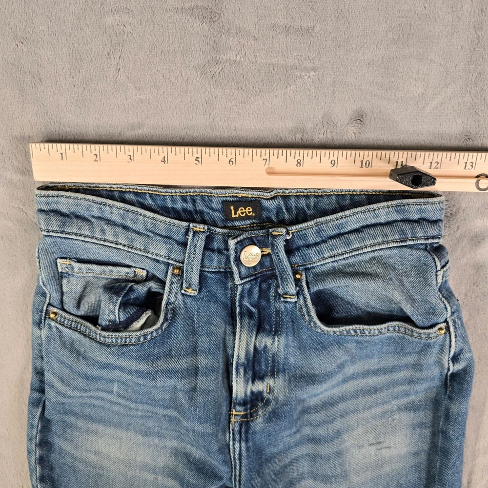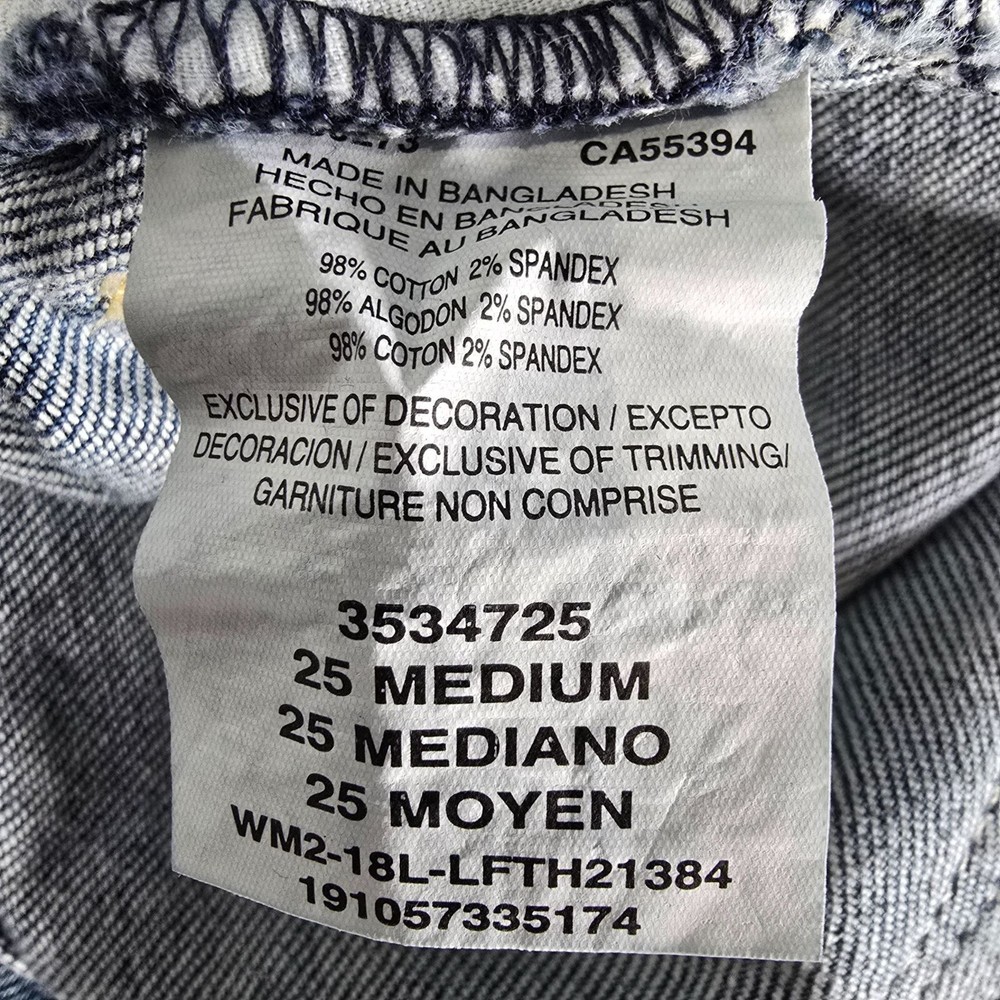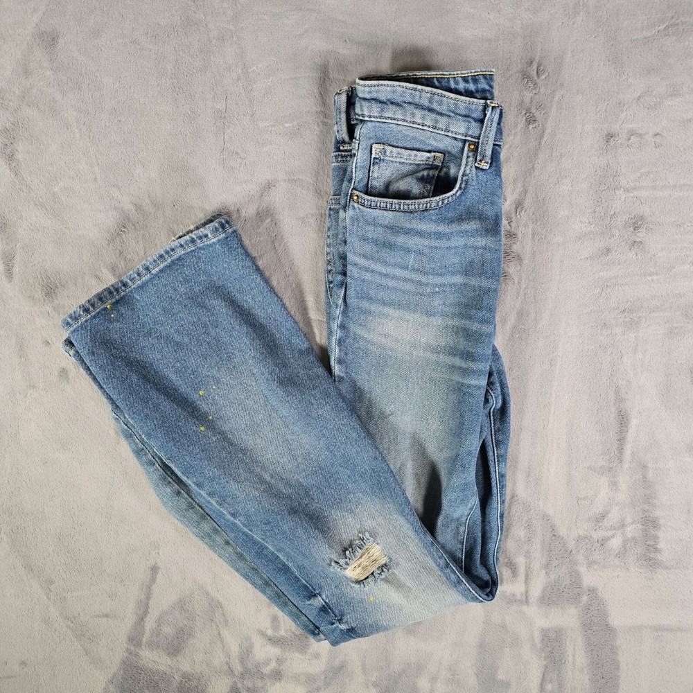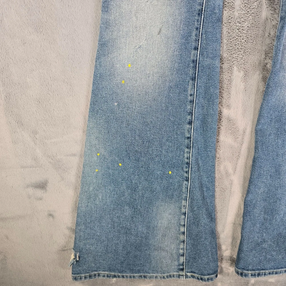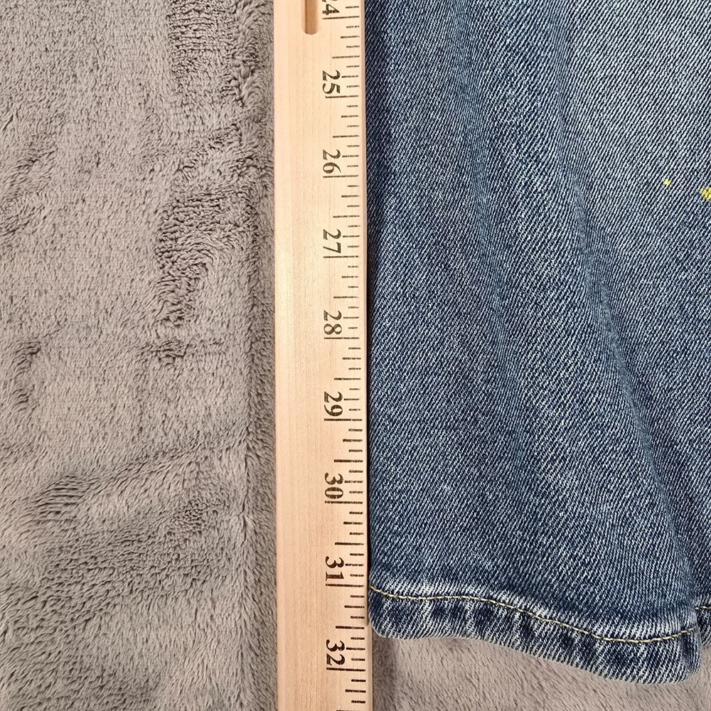 Condition Notes: Fair/thrashed used condition. Heavy whiskering in thigh area. Heavy fading on legs with uneven fade spots at bottom near cuffs. Heavy oblong fade pattern on back right pocket. Fraying at cuffs. Hole in left knee. Grass and dirt stains throughout. Specks of yellow paint on front of legs. See photos. Product Notes: • Brand: Lee • Country of Manufacture Bangladesh • Decade of Manufacture: 2010s (the CA Identification number on the tag was registered in 2009, so we know these can be no older than 2009) • Material: 98% Cotton, 2% Spandex • Lee SKU: 3534725 • 5-Pocket Style • Flare leg design • YKK Zipper • Lee Leather patch on back • Perfect lived-in distressed/thrashed look and great retro vibes Tag Size: 34x34 Modern Measured Size: 32x31 Measurements: Waist: 24 inches Rise: 10.5 inches Inseam: 31.5 inches Leg Opening: 11.5 inches