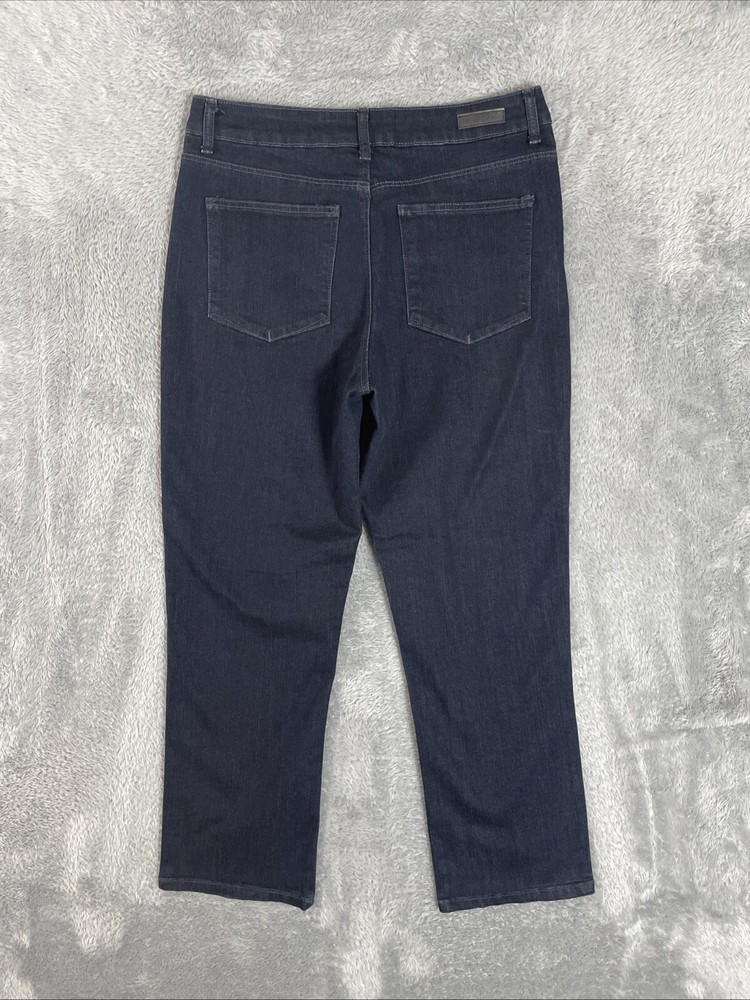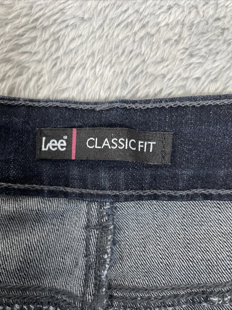 Lee Jeans Women's Petite 14P Dark Blue Classic Fit Straight Leg Stretch Denim There's a little nick by the zipper that may eventually need mending. The zipper flap covers it. CHECK THE MEASUREMENTS. Title only states tag size. Sizes can vary. Condition is used. Good used condition with typical wear. No losses to note. See photos for condition and detail. Please look carefully at all photos. The photos are an important part of the description. If you have questions, please ask. Returns are accepted within 30 days of purchase. The item must be returned in exactly the same condition as received. Items will be inspected, serial numbers checked, etc. Shipping fees are not refundable.