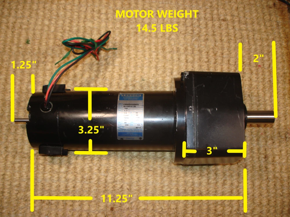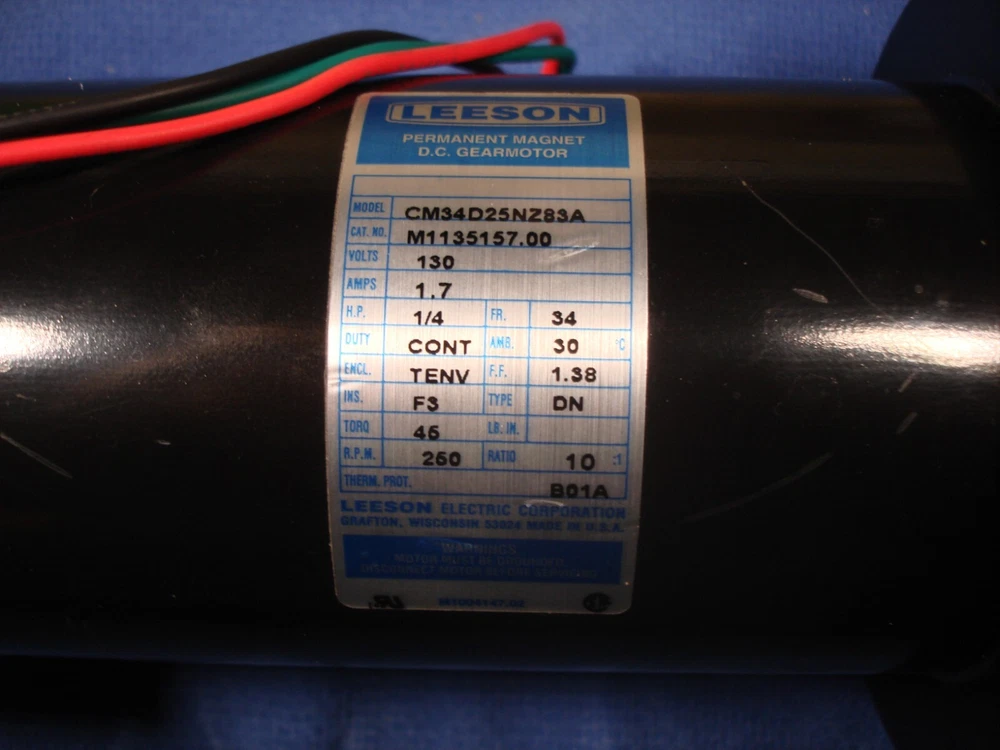 Leeson DC Gearmotor, Parallel Shaft, 1/4 HP, 250 RPM, 130 VDC, 10:1 Ratio, 3/4" Round Drive Shaft, 1/4" Accessory Shaft. Motor has been on a shelf for many years. I opened it up to show that it is unused. Works perfectly, watch the video. I have many more of this exact motor if you need more than one.