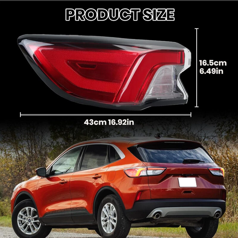 Product Description ITEMS DESCRIPTION: Type: Car Tail Light Condition: Brand New Lens: Heavy Duty Polycarbonate Color: Red & Clear Function: Driving Light*With Side Marker Light+Brake Light + Turn Signal Light Placement on Vehicle: Rear, Left Feature: Long Service Life Stable Performance Strong and Durable Exquisite Workmanship Non destructive installation Direct Replacement Tail Light High Impact Resistance Package: 1x Left Side Tail Light OE Number: LJ6B-13405 Fit: For Ford escape 2020 2021 2022 please refer to the given part number to check compatibility! Please make sure it will fit your vehicle before you buy. Shipping Returns Feedback Customer Service We do our best to ship it out ASAP after receiving your order and provide tracking numbers on all orders. Please note that we can only ship to addresses verified with PayPal or your credit card. We may contact you for additional verification if needed. We cannot ship to APO or FPO addresses, and orders to Puerto Rico, Hawaii, and Alaska will incur additional shipping charges. Hassle Free Returns! All our products come with a 30-Day Return Policy. If you would like to return your item and you are within 30 days of the purchase, and it is still in its original condition, you can request a return label and return the item by contacting us through eBay messaging. If there are any product defects, we offer Free Returns and will provide you with a prepaid return label. Once the item has been received and verified, a refund of the purchase price and any taxes paid will be issued through PayPal. Our return policy is void if you attempt to modify, open, unlock, root, or change the operating system of the device. 1. We hope to give you a positive eBay experience by working hard, and we expect to receive a positive feedback and Detailed Selling Rating (DSR) of 5 Rating in ALL of the feedback categories (Item as described, Communication, Shipping Time and Shipping and handling charges) from the buyer upon receiving the item . 2. If you are not satisfied with our Products or service, please don’t hesitate to contact us before you leave any Neutral/Negative feedbacks, we will always try our best for 100% customer satisfaction. 3. Communication is the best way to solve problem. leaving a negative feedback will not help us solve any problems. If you have any questions,Welcome to email/talk us. We will answer all questions and resolve any problems as quickly as possible. Business Hours: Sun-Fri 10:00-18:00 (HongKong Time GMT+8:00)Please email us through Ebay Messages box. Note: 1.We try our best to reply to your emails as soon as possible, however, due to high volume of daily incoming emails and time zone difference, we may not be able to reply your emails immediately. Please allow 1 business days for us to response. If you do not receive any reply from us, please check your email ensuring your mailbox has not reached full size. 2.Due to some ISP SPAM filter settings, you may not be able to receive our replies; if you have problems receiving our emails, you may need to use a different email account to contact us. 3.Please give us the opportunity to resolve any problem. We understand the concerns and frustrations you might have, and will try our best to resolve the issues. Please email us before leaving any negative feedback or open any dispute on PayPal. 4.We care about our valued customers, and will always try to help you. So if you have any problems, please e-mail us immediately. Shipping We do our best to ship it out ASAP after receiving your order and provide tracking numbers on all orders. Please note that we can only ship to addresses verified with PayPal or your credit card. We may contact you for additional verification if needed. We cannot ship to APO or FPO addresses, and orders to Puerto Rico, Hawaii, and Alaska will incur additional shipping charges. Returns Hassle Free Returns! All our products come with a 30-Day Return Policy. If you would like to return your item and you are within 30 days of the purchase, and it is still in its original condition, you can request a return label and return the item by contacting us through eBay messaging. If there are any product defects, we offer Free Returns and will provide you with a prepaid return label. Once the item has been received and verified, a refund of the purchase price and any taxes paid will be issued through PayPal. Our return policy is void if you attempt to modify, open, unlock, root, or change the operating system of the device. Feedback 1. We hope to give you a positive eBay experience by working hard, and we expect to receive a positive feedback and Detailed Selling Rating (DSR) of 5 Rating in ALL of the feedback categories (Item as described, Communication, Shipping Time and Shipping and handling charges) from the buyer upon receiving the item . 2. If you are not satisfied with our Products or service, please don’t hesitate to contact us before you leave any Neutral/Negative feedbacks, we will always try our best for 100% customer satisfaction. 3. Communication is the best way to solve problem. leaving a negative feedback will not help us solve any problems. Customer Service If you have any questions,Welcome to email/talk us. We will answer all questions and resolve any problems as quickly as possible. Business Hours: Sun-Fri 10:00-18:00 (HongKong Time GMT+8:00)Please email us through Ebay Messages box. Note: 1.We try our best to reply to your emails as soon as possible, however, due to high volume of daily incoming emails and time zone difference, we may not be able to reply your emails immediately. Please allow 1 business days for us to response. If you do not receive any reply from us, please check your email ensuring your mailbox has not reached full size. 2.Due to some ISP SPAM filter settings, you may not be able to receive our replies; if you have problems receiving our emails, you may need to use a different email account to contact us. 3.Please give us the opportunit
