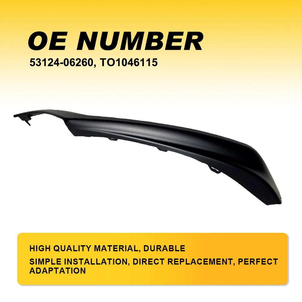 Fit For: 2021-2023 Toyota Camry XSE SE Specifications: OE: Left: 53124-06260, TO1046115 Material: ABS Color:Glossy black Placement on vehicle: Front left Features: *Perfect Match Manufactured according to your car model to match with your vehicle perfecly. *Simple installation Easy installation with direct replacement,other modifications are not required. *Superior material Made of superior material to extend its long service life and durability. *High-quality Our trim with the advantages of wear and scratch resistance provides a better shopping experience for our customer. Packaging include: Left Front Bumper Lower Grille Trim Moldings For 2021-2023 Toyota Camry XSE SE Fit For: 2021-2023 Toyota Camry XSE SE Specifications: OE: Left: 53124-06260, TO1046115 Material: ABS Color:Glossy black Placement on vehicle: Front left Features: *Perfect Match Manufactured according to your car model to match with your vehicle perfecly. *Simple installation Easy installation with direct replacement,other modifications are not required. *Superior material Made of superior material to extend its long service life and durability. *High-quality Our trim with the advantages of wear and scratch resistance provides a better shopping experience for our customer. Packaging include: Bumper Trim*1 Item Specifics Brand AUXITO Type Bumper Trim Placement on Vehicle Front, Left, Lower Color Black Material ABS Plastic OE/OEM Part Number 53124-06260, TO1046115 Manufacturer Part Number 53124-06260, TO1046115 Fitment Type Direct Replacement Manufacturer Warranty 2 Years Fitment For 2021-2023 Toyota Camry XSE SE Universal Fitment No Features Durable, Direct Fit, Easy Installation FAQ ♥ If you have a decoding problem or any other problems, please contact us first, we will help you with it. We will reply you within 24 hours in working days. I'm a new seller, thanks a lot for your trust and convince! I will serve you with all my heart. ♥ Q1: Will this bulb fit my vehicle? A: We can match almost any vehicle to one of our bulb sizes. eBay only lets us include some vehicle fitments per listing, but if your vehicle does not show up on the compatibility table at the top of our listings, welcome you to contact us for free consulation before purchasing a product. Q2: My item has not arrived, what's taking so long? A: Sometimes items take longer than expected, especially if it’s going far or to rural area. Check with your post office to see if your item has been held up. Sometimes Royal Mail will not update a tracking number until it has arrived at its destination. If your item still don't arrive after a few days, let us know so we can double check for you and help solve it asap. Q3: My bulbs won't fit, help! A: Special bulb holder may be required. See if you can take the holder from the stock bulb. If not, let us know. The bulb size may be wrong, double check the item you received with the item you ordered. Do you have an aftermarket lighting housing? These may not be perfectly fitted for aftermarket bulbs and will require some manual modifications. Q4: Neither side lighting up? Both sides flicker, hyper flash, or work inconsistantly. A:Check the light fuses, and then check the ballast plugs to insure correct installation. If this doesn't work, there may be a voltage problem with the vehicle. You probably just need a relay or capacitor. Even though some bulbs are builtin resistors, they may still need a decoder. Pay & Ship (1). We gladly accepts payment via PayPal, We will ship your item(s) within 24 hours. (2). Before payment, please keep the consistency of Paypal address and ebay address. (3). Quantity orders are welcome! Returns (1). We offer 60 days free return policy. Please contact us within 60 days from the date you receive your order if you have any issues with the product or want return. Refund will be send after we got your resend package. (2). All returned items should be in the original packaging , return tracking information should be provided . Contact Us (1).Negative feedback will not help resolve any problems you have, please contact us via eBay messages before leaving negative feedback , our customer service will make best effort to help you with the issues. (2).We maintain high standards of excellenceand strive for 100% customer satisfaction! Feedback is very important to us. We request that you contact us immediately before you give us neutral or negative feedback, so that we can satisfactorily address your concerns. About us We're professional in car and motorcycle accessories, especially in LED bulbs. We have our own factory and R&D team. Our belief is to sell top quality items that fit your car and serve you with our heart. Anything please feel free to contact us! Our customer service is very responsibility. Come and follow us! DESCRIPTION NEW ARRIVED HOT SALE CONTACT US SAVE US Store Category Store Home Other Hot Item For Dodge Charger Bumper Bracket 2015-2021 Pair Passenger & Driver Side Front USD 26.99 Front Bumper Bracket Support 1 Pair Left Right Side for 2009-2020 Dodge Journey USD 13.99 For 2011-2013 Toyota Corolla Front Bumper Support Bracket Set Left and Right USD 11.99 Set Front Bumper Retainer Side Support Brackets For Toyota Camry 2012-2014 LH&RH USD 12.99 Bumper Bracket Support For 2011-13 Toyota Corolla Front Driver & Passenger Side USD 11.39 New List Item Fits For 2016-2019 Nissan Sentra 2PCS Left & Right Side Bumper Support Bracket USD 13.99 For BMW E90 M3 Sedan 2008~2012 Real Carbon Fiber Headlight Eyelid Trim Cover 2x USD 16.99 Fit For 2001-2005 Lexus IS300 Smoked Lens LED Lamp Side Marker Turn Signal Light USD 42.99 For Honda Accord Sedan Bumper Hold Bracket Retainer Front w/8 clips 71198TVAA01 USD 11.99 2PCS Roof Drip Moulding Trim Left & Right For 2005-2015 Toyota Tacoma DOUBLE CAB USD 39.99 Picture Left Front Bumper Lower Grille Trim Moldings For 2021-2023 Toyota Camry XSE SE Fit For: 2021-2023 Toyota Camry XSE SE Specifications: OE: Left: 53124-06260, TO1046115 Material: ABS Color: