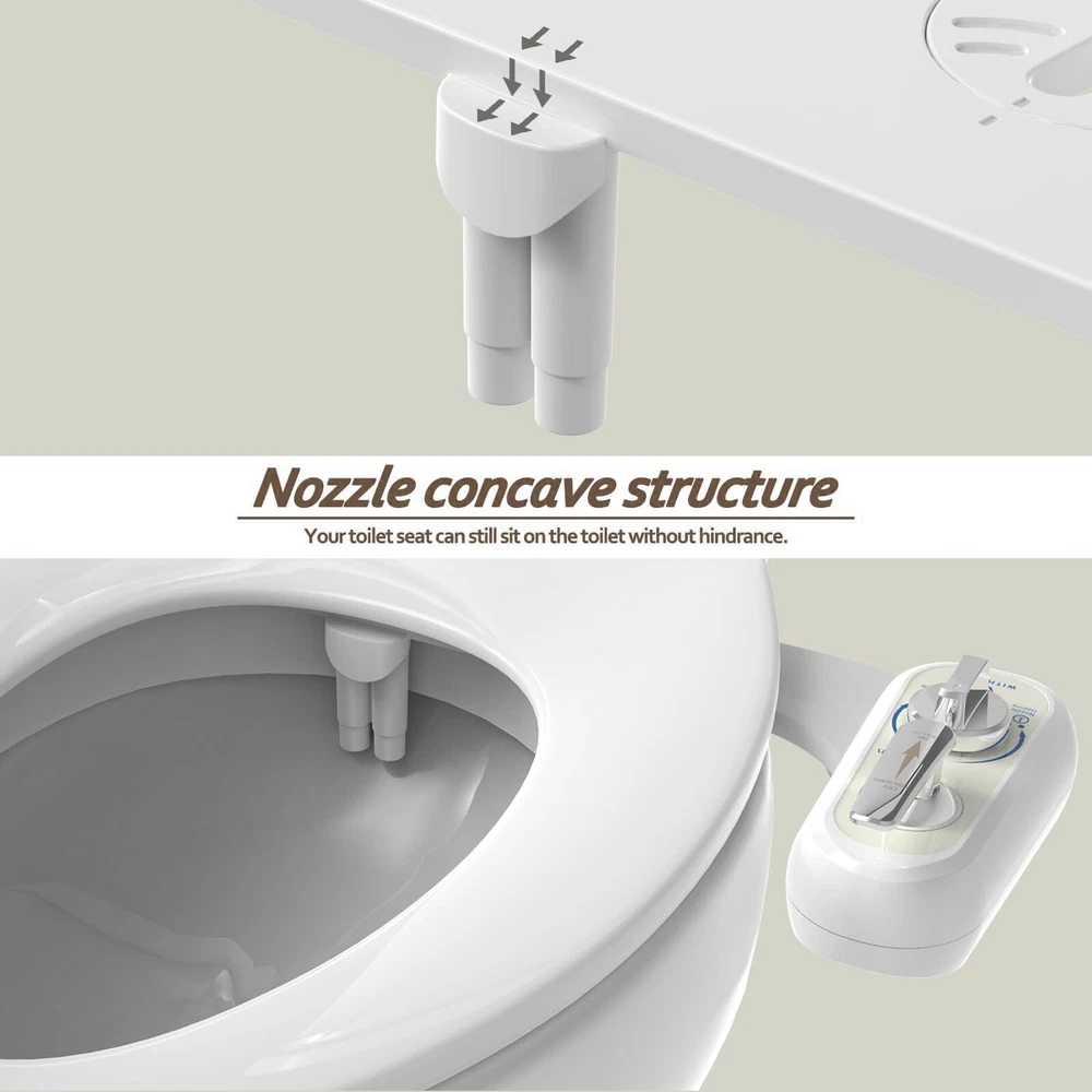 Left Hand Bidet Attachment for Toilet - Self-Cleaning control panel on left side Dual Nozzle (Frontal & Rear Wash) Non-Electric Adjustable Water Pressure, Water Bidet Toilet Seat Attachment Product Details Manufacturer: WITHLENT Item Weight: 1.5 pounds Product Dimensions: 16.5 x 9.8 x 4 inches Country of Origin: China Item model number: J1016-03 Color: White Included Components: WITHLENT Bidet Body * 1, Brass T-Adapter * 1, Teflon Tape * 1, Cold Water Connection Metal Braided Hose * 1, Installation and User Guide * 1 Batteries Included?: No Batteries Required?: No Date First Available: August 16, 2024 THE BIDET FOR LEFT-HANDED PEOPLEDual Nozzle Bidet is for left-handed people and anyone in need of a bidet attachment with controls on the left side. water pressure can be easily adjusted by operating rod and the nozzles are positionable ensuring a thorough and precise clean. Say no to toilet paper. FASTEST, EASIEST INSTALLATIONU-shaped adjustment plates allow for quick and easy installation without removing the entire toilet seat. Stainless steel hinges allow for adjustments even after installation. DUAL WASH MODESThe rear wash sprays a stronger flow towards the rear. The feminine wash sprays a softer flow towards the front. The feminine wash also helps to keep you clean during monthly cycles and comes in handy for new or expecting mothers. SELF-CLEANING NOZZLESMaintain hygiene with self-cleaning nozzles that retract back into protective housing when not in use. Enjoy a consistently clean bidet experience with minimal effort. NO KIDDING 12-MONTH WARRANTYWe are always here to make sure you are 100% satisfied, so anytime you have problems. the most effective way is to find our after-sales support. They will be happy to solve any problems for you.