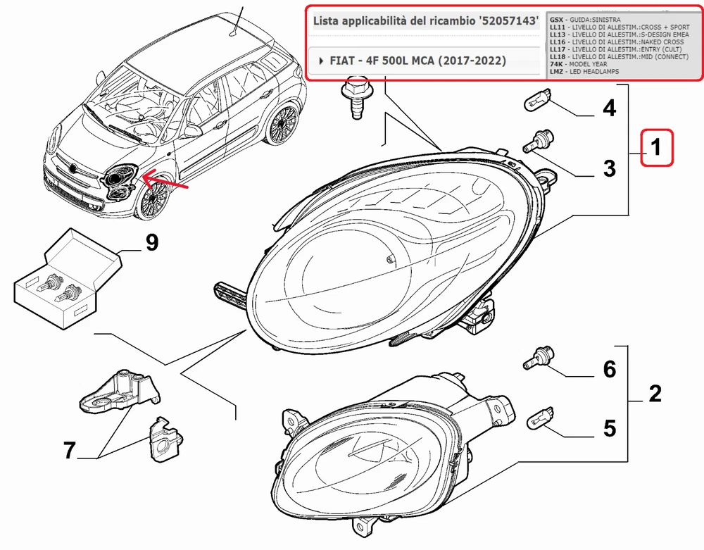 Headlamp Front Left - Fiat 500L 2017/2022- Original Fiat 52089196 The description of this item has been automatically translated. If you have any questions, please feel free to contact us. Title of the document LEFT FRONT PROJECTOR HEADLIGHT DRIVER SIDE NEW WITH PROTECTIVE FILM STILL ATTACHED FIAT 500L - 2017 / 2022 -ORIGINAL FIAT- To check the compatibility of the item with your car, or for any other information, you can contact us and we will be happy to help you! - WhatsApp The item is not shipped to the Canary Islands Title of the document LEFT FRONT PROJECTOR HEADLIGHT DRIVER SIDE NEW WITH PROTECTIVE FILM STILL ATTACHED FIAT 500L - 2017 / 2022 -ORIGINAL FIAT- To check the compatibility of the item with your car, or for any other information, you can contact us and we will be happy to help you! - WhatsApp The item is not shipped to the Canary Islands Brand Non applicabile Tecnologia di illuminazione Alogena Codice ricambio originale OE/OEM 52089196 Tipo Fanale frontale Posizionamento sul veicolo Anteriore Posizionamento sul veicolo A sinistra Marca Fiat MPN Non applicabile Caratteristiche Fari originali Codice attacco lampadina H7 EAN Non applicabile