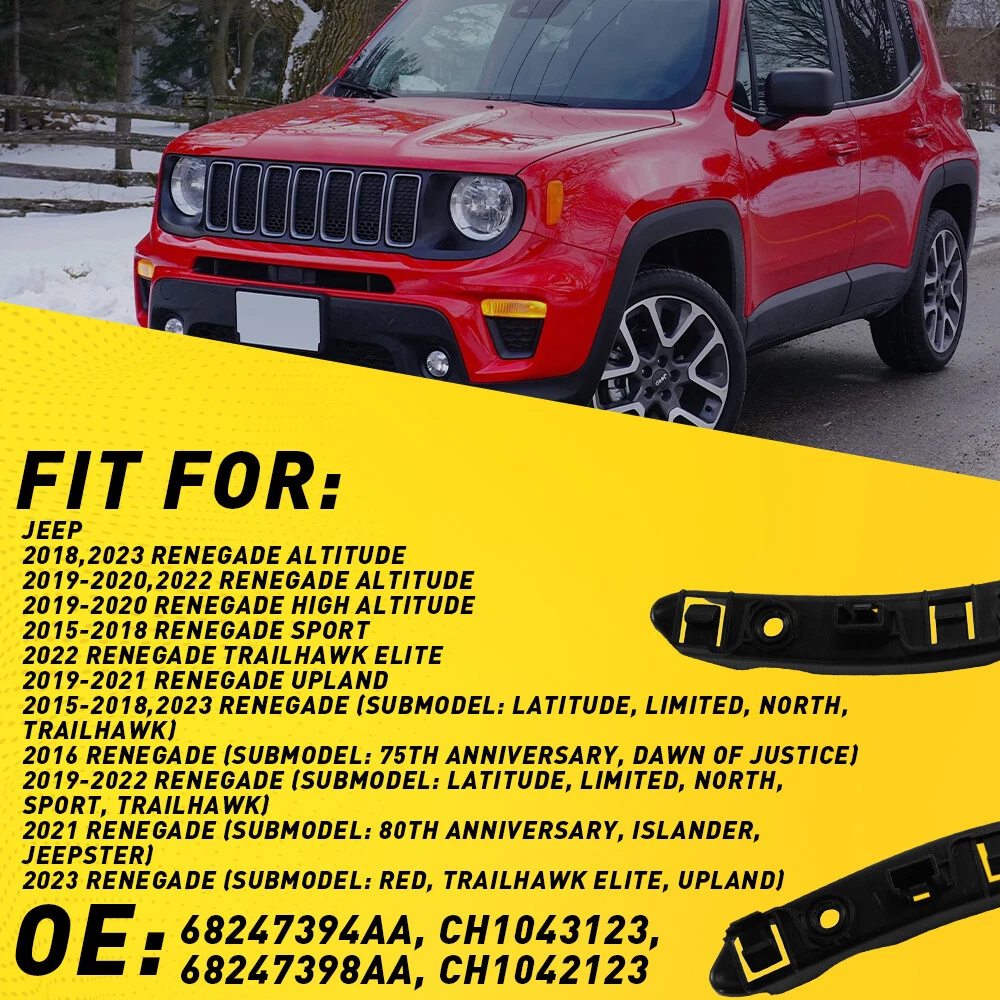 Fit for Jeep 2018,2023 Renegade Altitude 2019-2020,2022 Renegade Altitude 2019-2020 Renegade High Altitude 2015-2018 Renegade Sport 2022 Renegade Trailhawk Elite 2019-2021 Renegade Upland 2015-2018,2023 Renegade (submodel: Latitude, Limited, North, Trailhawk) 2016 Renegade (submodel: 75th Anniversary, Dawn Of Justice) 2019-2022 Renegade (submodel: Latitude, Limited, North, Sport, Trailhawk) 2021 Renegade (submodel: 80th Anniversary, Islander, Jeepster) 2023 Renegade (submodel: Red, Trailhawk Elite, Upland) Specifications: OE Number: 68247394AA, CH1043123, 68247398AA, CH1042123 Material: ABS Left & Right Side Bumper Brackets Fit Support For 2018-2022 Renegade Jeep ABS Fit for Jeep 2018,2023 Renegade Altitude 2019-2020,2022 Renegade Altitude 2019-2020 Renegade High Altitude 2015-2018 Renegade Sport 2022 Renegade Trailhawk Elite 2019-2021 Renegade Upland 2015-2018,2023 Renegade (submodel: Latitude, Limited, North, Trailhawk) 2016 Renegade (submodel: 75th Anniversary, Dawn Of Justice) 2019-2022 Renegade (submodel: Latitude, Limited, North, Sport, Trailhawk) 2021 Renegade (submodel: 80th Anniversary, Islander, Jeepster) 2023 Renegade (submodel: Red, Trailhawk Elite, Upland) Specifications: OE Number: 68247394AA, CH1043123, 68247398AA, CH1042123 Material: ABS Placement on vehicle: bumper (left+right) Features: *Functions: Brackets provide support to the bumper, reduce the impact of driving vibration and protect the front of the car effectively. *Durable Made of superior ABS material with durable and wear resistant, corrosion resistant functions. *State-of-the-Art Manufacturing Process Replacement brand bumper brackets are manufactured with the same processes as the old one, ensuring excellent fitment and a quality finish. *Economical and practical Lean manufacturing process keeps costs down and quality high. Packaging include: Bumper Support Bracket*2 Item Specifics Country/Region of Manufacture China Manufacturer Warranty 2 Years Brand AUXITO Quantity Set of 2 (Left & Right) Fitment Type Direct Replacement Placement on Vehicle Front bumper (left right) Color Black Function Brackets provide support to the bumper Material ABS OE Number 68247394AA, CH1043123, 68247398AA, CH1042123 OE/OEM Part Number 68247394AA, CH1043123, 68247398AA, CH1042123 Type Bumper Rail Reinforcement OE Spec or Performance/Custom OE Spec Items Included Bumper Support Bracket*2 Features Superior quality, long service life, Durable Fitment Fit For Jeep 2018-2022 Renegade etc Payment We accept PayPal via eBay Secure Check-Out only. Immediate payment needs to be processed for items with Add to Cart option so that any promotional discounts can be applied to your order immediately. Shipping 1 .We do everything we can to ship your orders out as soon as possible. 2. Shipping and Handling: We process orders within two business day after the payment was clear. Returns Our 30-day Satisfaction Guarantee assures our customers that they will receive all orders promptly and exactly as described. In addition, it allows customers to return new and unused products in their original factory condition for any reason within 30 days from the date of purchase. 1. All returns must be pre-approved by AUXITO and have a return merchandise authorization(RMA) number. Unauthorized returns will not be accepted. 2. Buyers are responsible for appropriate packing, returning shipping cost, insurance and returning the item in "new" condition. Used items will not be accepted for return. 3. We will replace the returning item with an identical item, issue a full store credit or a full refund. Contact Us Our Working Time:(GMT+8)Monday to Friday,9:00-18:00. For inquires and customer support, please send your email via ebay email system. All emails will be responded to within 24 hours during business days. Feedbacks 1. We appreciate your business and strived to improve our customer service and our commitment to quality. 2. We will leave a positive feedback immediately after payment is received. We appreciate a positive feedback as much as you do. 3. If for some reason there is any issue with the purchase, please contact us prior to leaving feedback, and we will be glad to work with you to have it resolved. DESCRIPTION PAYMENT SHIPPING RETURN POLICY CONTACT US Hot Item AUXITO 7440/7443 Turn LED Signal Light Bulbs Anti Hyper Flash Amber Super Bright USD 21.84 Fit For 2015-2019 Hyundai Center Light Gray Sonata Armrest Console Lid Cover USD 13.29 4" Red Truck Long Performance High Flow Cold Air Intake Cone Dry Filter Cotton USD 27.54 146PCS For Toyota RAV4 Fender Door Hood Bumper Trim Clip Retainer Fastener Kit USD 10.92 Waterproof Motorcycle Handlebar Dual USB Phone Charger Cigarette Lighter Socket USD 13.29 Hot Item Fit For 2015-2019 Hyundai Center Light Gray Sonata Armrest Console Lid Cover USD 13.29 146PCS For Toyota RAV4 Fender Door Hood Bumper Trim Clip Retainer Fastener Kit USD 10.92 4" Red Truck Long Performance High Flow Cold Air Intake Cone Dry Filter Cotton USD 27.54 Waterproof Motorcycle Handlebar Dual USB Phone Charger Cigarette Lighter Socket USD 13.29 AUXITO 7440/7443 Turn LED Signal Light Bulbs Anti Hyper Flash Amber Super Bright USD 21.84 Left & Right Side Bumper Brackets Fit Support For 2018-2022 Renegade Jeep ABS Fit for Jeep 2018,2023 Renegade Altitude 2019-2020,2022 Renegade Altitude 2019-2020 Renegade High Altitude 2015-2018 Renegade Sport 2022 Renegade Trailhawk Elite 2019-2021 Renegade Upland 2015-2018,2023 Renegade (submodel: Latitude, Limited, North, Trailhawk) 2016 Renegade (submodel: 75th Anniversary, Dawn Of Justice) 2019-2022 Renegade (submodel: Latitude, Limited, North, Sport, Trailhawk) 2021 Renegade (submodel: 80th Anniversary, Islander, Jeepster) 2023 Renegade (submodel: Red, Trailhawk Elite, Upland) Specifications: OE Number: 68247394AA, CH1043123, 68247398AA, CH1042123 Material: ABS Placement on vehicle: bumper (left+right) Features: *Functions: Brackets provide support to the bumper, reduce the impact of driving vibration and prot