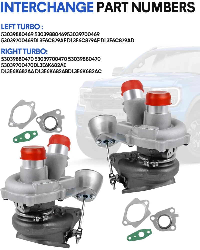 WHY OUR CUSTOMERS KEEP SHOPNG WITH US ✅All items are covered by manufacturer warranty. ✅FAST FREE SHIPPING. ✅Most orders ship within 1 business day with Tracking Number. Customer also can choose two-day or expedited shipping. ✅100% customer satisfaction is backed by a 30-Day Money Back Guarantee for New items and a 30-Day Money Back Guarantee for Recon. FEATURES 1 Manufactured with Precision to Meet OE Standards IATF16949 Certified. 2 High Quality & Brand New 3 Two Year Warranty. 4 After Market Replacement 5 Customers Service Center Will Deal with Pre-sale and After-sale Problems In Time Left & Right Twin Turbocharger Kit for 13-16 Ford F150 Transit Expedition 3.5L WHY OUR CUSTOMERS KEEP SHOPNG WITH US ✅All items are covered by manufacturer warranty. ✅FAST FREE SHIPPING. ✅Most orders ship within 1 business day with Tracking Number. Customer also can choose two-day or expedited shipping. ✅100% customer satisfaction is backed by a 30-Day Money Back Guarantee for New items and a 30-Day Money Back Guarantee for Recon. FEATURES 1 Manufactured with Precision to Meet OE Standards IATF16949 Certified. 2 High Quality & Brand New 3 Two Year Warranty. 4 After Market Replacement 5 Customers Service Center Will Deal with Pre-sale and After-sale Problems In Time 6 Factory Affordable Price with High Quality Service: Return/ Replace/ Offer Technical Support. FITMENTS For Ford Expedition EL 3.5L 2015-2016, Ford Expedition King 3.5L 2015-2016 For Ford Expedition Limited 3.5L 2015-2016, Ford Expedition Max 3.5L 2015-2016 For Ford Expedition Platinum 3.5L 2015-2016, Ford Expedition SSV 3.5L 2016 For Ford Expedition XL 3.5L 2015-2016, Ford Expedition XLT 3.5L 2015-2016 For Ford F-150 FX2 3.5L 2013-2014, Ford F-150 FX4 3.5L 2013-2014 For Ford F-150 King 3.5L 2013-2016, Ford F-150 Lariat 3.5L 2013-2016 For Ford F-150 Limited 3.5L 2013-2014&2016, Ford F-150 Platinum 3.5L 2013-2016 For Ford F-150 SSV 3.5L 2016, Ford F-150 Tremor 3.5L 2014 For Ford F-150 XL 3.5L 2013-2016, Ford F-150 XLT 3.5L 2013-2016 For Ford Transit-150 Base 3.5L 2015-2016, Ford Transit-150 XL 3.5L 2015-2016 For Ford Transit-150 XLT 3.5L 2015-2016, Ford Transit-250 Base 3.5L 2015-2016 For Ford Transit-250 PTV 3.5L 2016, Ford Transit-350 Base 3.5L 2015-2016 For Ford Transit-350 XL 3.5L 2015-2016, Ford Transit-350 XLT 3.5L 2015-2016 OEM NUMBER Left Turbo : 53039880469 53039880469 53039700469 53039700469 / DL3E6C879AF DL3E6C879AE DL3E6C879AD. Right Turbo: 53039880470 53039700470 53039880470 53039700470/ DL3E6K682AE DL3E6K682AA DL3E6K682AB DL3E6K682AC. ITEM INCLUDES Turbo Turbocharger Kit with Gasket FREE RETURN If you are unhappy with your purchase for any reason, you can return it to us in an un-used condition in the original packaging within 30 days of purchase and we'll give you a refund or exchange. The refund/Exchange will not include postage/eBay costs. Please note you MUST contact us to obtain a Return Authorization Number before returning any part. Any parcel without the Return Authorization Number will be rejected *If your item is faulty or was incorrect, you must contact our sales representative before returning the parcel and we will endeavour to solve the problem effectively. Video or picture is required to show the item 、condition before we issue the Return Authorization Number. * Professional installation is highly recommended (No Instruction Included) * For any needs please contact us Item Specifics Brand : susucar Type : Turbocharger OE/OEM Part Number : 53039700469, 53039700470 Interchange Part Number : DL3E-6C879-AF, DL3E-6K682-AF, DL3E6C879AF, DL3E6K682AF Superseded Part Number : 5303-970-0469, 5303-970-0470, 53039880469 Compatible Makes : Ford Compatible Models : Ford Expedition , F-150, Transit Compatible Years : 2013-2016 Compatible Engine : 3.5L V6 Material : high-strength aluminum and iron Items Included : Turbo Turbocharger Kit with Gasket Package Dimensions : 24.6 x 12 x 12 inches Item Weight : 28.3 pounds Manufacturer Warranty : 2 Years Fitment Type : Direct Replacement OE Spec or Performance/Custom : OE Spec About My Store : 100% SATISFACTION, 100% Source manufacturer Manufacturer : SUSUCARpartsWhosale Note : Please contact us to confirm the application before Purchase other part number 1 : 5303-988-0469, 53039880470, 5303-988-0470 Why choose US? Susucar is passionate about maintaining our culture of demonstrating value and building personal client relationships in perfecting the client experience. We are also a culture of giving back to the community and preserving our precious planet - a passion that runs deep throughout our Company. Every single item we sell goes through thorough inspection processes to make sure it works perfectly for you. If for any reason you are not satisfied with our product, please shoot us a message. We will do everything in our power to make things right Returns and Exchanges Hassle Free Returns! All our new and refurbished products come with a 30-Day Free Return Policy. If you would like to return your item and you are within 30 days of the purchase, and it is still in its original condition, you can request a return label and return the item by contacting us through eBay messaging. We offer Free Returns in the USA and will provide you with a prepaid return label. Once the item has been received and verified, a refund of the purchase price and any taxes paid will be issued. Shipping & Payment Policy Ground Shipping is always Free within the US (48 contiguous states)! Once payment is received, your order will be processed and shipped the same or next business day. A tracking number will be provided on all orders. Please note that we can only ship to addresses verified with PayPal. We may contact you for additional verification if needed. We cannot ship to APO or FPO addresses, and orders to Puerto Rico, Hawaii, and Alaska will incur additional shipping charges. For your safety and convenience, we process all payments through PayPal where all major Credit Cards are accepted 