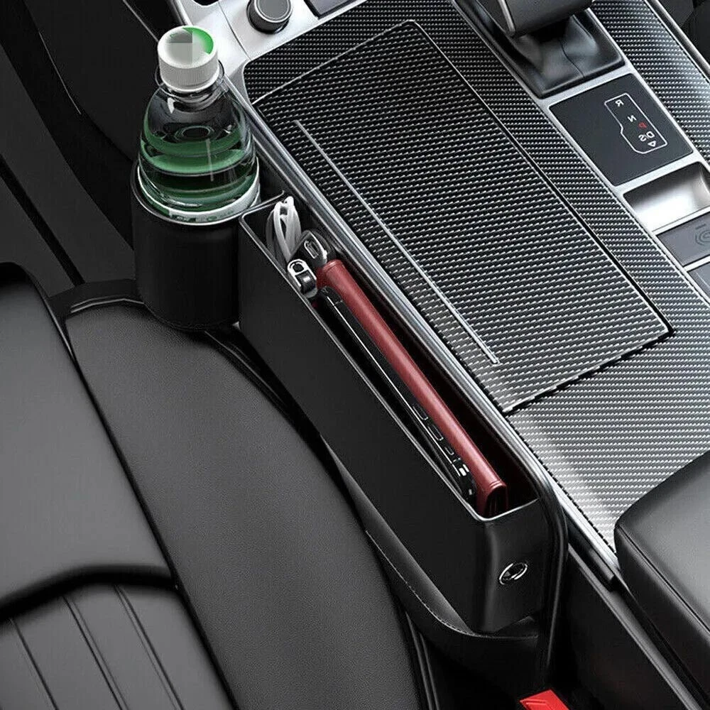 UPC: Does not apply Note: cup holder just can hold cups with a diameter of less than 2.9 in Manufacturer Warranty: 1 Year Type: Car Seat Gap Filler Phone Holder Storage Box Organizer Bag gtin13: Does not apply Features: with Cup Holder;With USB Cable Hole Material: ABS+PU leather Note 1: measure the "gap" before you buy it! Placement on Vehicle: Front, Front Driver side, Left Size: 30 * 20 * 9cm/11.8 * 7.9 * 3.6in Universal Fitment: Yes Color: Black Brand: Unbranded