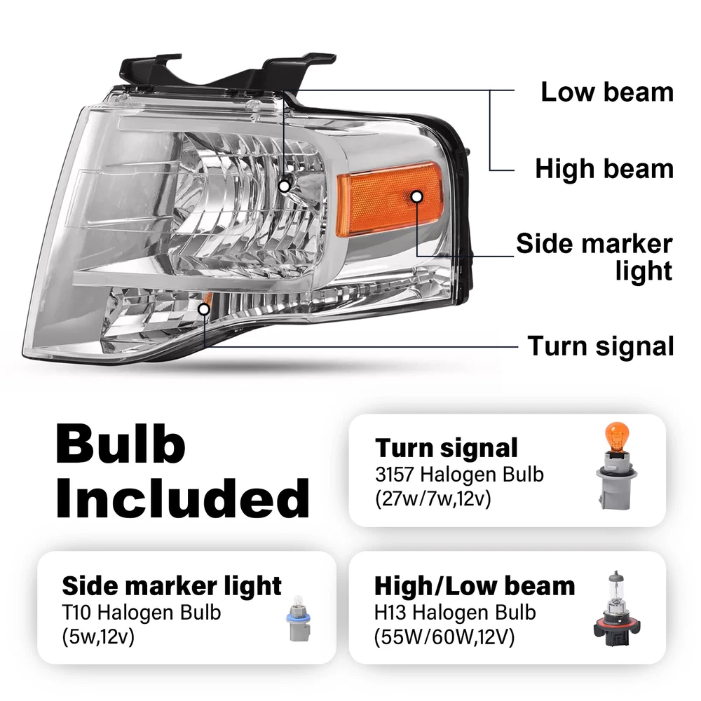 Store Categories Store Categories For Ford For Chevrolet For Dodge For Toyota For Honda Other Details Left/Driver Side Chrome Headlight Halogen Lamp For Ford Expedition 2007-2014 New FIT FOR: For Ford Expedition 2007-2014 Product Specifics: Type: Headlight Lighting Technology: Halogen Lens Color: Clear Lens Housing Color: Chrome Housing Placement on Vehicle: Left, Front Installation Method: Replacement Material: Plastic Manufacturer Warranty: 3 Years Replace Part Number: Replace For 7L1Z13008BB, FO2502226, FR492-B001L Features: Ultra-high brightness performance: Adopt optimized lighting technology to provide a wider and brighter lighting range, greatly improving the safety of night driving. Energy saving and long life: The high-efficiency light source design is not only energy-saving and environmentally friendly, but also can significantly extend the service life and reduce the frequency of replacement. Superior anti-fog performance: Exclusive anti-fog design, fearless of bad weather, ensures clear lighting in wet or cold environments. Unified style of the whole car: Unique appearance design, seamlessly integrated with the overall style of the car body, adding high-end texture to your car. Package Includes : 1 X Headlight Bulbs Included Shipping: All items will be shipped out in 1 business day, no expedited service available. We ship our items to USA only(Does NOT include Hawaii, Alaska or Puerto Rico, PO Boxes/APO's). Shipping Notes: We use multiple warehouses and will select the nearest warehouse for delivery according to your order address and our inventory, Thank you for your cooperation. Contact us: Any Questions, Just feel free to contact us on eBay. We will reply you in 24 hours. On Nov 26, 2024 at 03:04:48 PST, seller added the following information: On Nov 27, 2024 at 22:29:29 PST, seller added the following information: Store Categories Store Categories For Ford For Chevrolet For Dodge For Toyota For Honda Other Details Left/Driver Side Chrome Headlight Halogen Lamp For Ford Expedition 2007-2014 New FIT FOR: For Ford Expedition 2007-2014 Product Specifics: Type: Headlight Lighting Technology: Halogen Lens Color: Clear Lens Housing Color: Chrome Housing Placement on Vehicle: Left, Front Installation Method: Replacement Material: Plastic Manufacturer Warranty: 3 Years Replace Part Number: Replace For 7L1Z13008BB, FO2502226, FR492-B001L Features: Ultra-high brightness performance: Adopt optimized lighting technology to provide a wider and brighter lighting range, greatly improving the safety of night driving. Energy saving and long life: The high-efficiency light source design is not only energy-saving and environmentally friendly, but also can significantly extend the service life and reduce the frequency of replacement. Superior anti-fog performance: Exclusive anti-fog design, fearless of bad weather, ensures clear lighting in wet or cold environments. Unified style of the whole car: Unique appearance design, seamlessly integrated with the overall style of the car body, adding high-end texture to your car. Package Includes : 1 X Headlight Bulbs Included Shipping: All items will be shipped out in 1 business day, no expedited service available. We ship our items to USA only(Does NOT include Hawaii, Alaska or Puerto Rico, PO Boxes/APO's). Shipping Notes: We use multiple warehouses and will select the nearest warehouse for delivery according to your order address and our inventory, Thank you for your cooperation. Contact us: Any Questions, Just feel free to contact us on eBay. We will reply you in 24 hours. On Nov 26, 2024 at 03:04:48 PST, seller added the following information: On Nov 27, 2024 at 22:29:29 PST, seller added the following information: On Jan 1, 2025 at 19:29:20 PST, seller added the following information:
