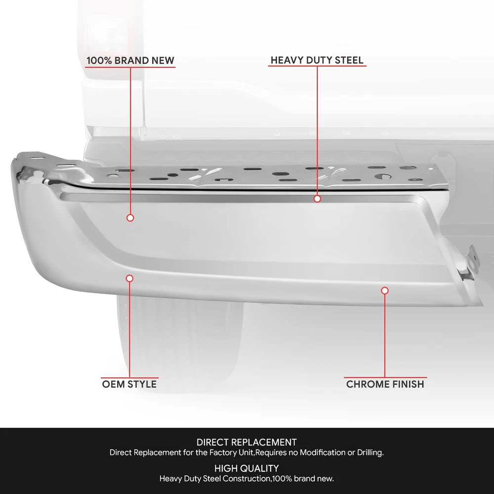 Welcome to Speed Daddy Store Home About Us Feedback Add To Favorites New Arrivals Ending Soon Contact Us Left+Right Set Chrome Rear Bumper End Cap For 2021-24 Ford F150 w/o Park Sensor Product Description Revitalize the look of your vehicle effortlessly with Our Direct Replacement Parts. Save your moeny now and enjoy a refreshed front-end appearance! Specifics and Features : OEM Design Direct Replacement for original Bumper Cover/ Precise Fitment Designed for Longevity of Use and Reinforced Material Effortless & Easy Installation High-Quality and Costs Down Designed for Primed Finish Includes : 1 X Pair of Bumper End Cap Notes : Compatible with: FORD F-150 2021-2024 Ftis Models Without Sensor 100% Brand New Installation Instruction is NOT Included Professional Installer is Highly Recommended Shipping Payment Returns Terms & Conditions Feedback Contact Us DOMESTIC LOWER 48 US STATES: FREE SALES TAX: CA ONLY VERY IMPORTANT: Double check shipping address. We are not responsible for incorrect or undeliverable addresses. Please use Shipping & Payments tab on top of page for shipping details for your location. Shipping to PR, HI, AK and PO Box addresses will be charged the same as shipping to Canada. GU, VI, SAIPAN will be charged the same as international shipping rate. For Canada shipping please select the lowest price. We do not offer expedited shipping. US Territories such as GU, VI, SAIPAN will be charged the same as CANADA shipping rate. Transaction will be held until a full shipping amount received. Some of the packages cannot be delivered to a PO Box. Customer is responsible to ensure PO Box address given is deliverable by the shipping company. Package will be held until a valid physical address is provided. Customer assumes shipping charges incurred in shipping to undeliverable address. International buyers are responsible for all customs duties, taxes, and other applicable fees incurred by the country's customs/border regulations. Please contact customs for more information. We ship 98% of all orders the same or next business day after payment received/cleared. Please understand that once orders are shipped, we cannot control the transit times thereafter. Most orders will ship via USPS First Class/Priority Mail or FedEx/UPS or the best suitable carrier for the specific size of the product. We are not responsible for any changes to address after item has been shipped. Item will be shipped out within 24 hours after payment cleared, except for weekends and holidays. PayPal e-check takes 3-7 business days to be processed. We will not ship until an e-check has been cleared. 30 Days Free Returns, please notify us within 30 days after you've received your order. Please email us or call us to obtain a RMA (Return Merchandise Authorization) number from us, and have the RMA number written on the return package. Items to be returned must be in resalable condition. All returns are for refund ONLY. No exchange accepted. For emissions related items, please check with your local jurisdiction for emission specific requirements before purchasing. All items do not come with installation instruction unless otherwise specified. If item is questionable, please consult your local professional/mechanic before making purchase. Shipping DOMESTIC LOWER 48 US STATES: FREE SALES TAX: CA ONLY VERY IMPORTANT: Double check shipping address. We are not responsible for incorrect or undeliverable addresses. Please use Shipping & Payments tab on top of page for shipping details for your location. Shipping to PR, HI, AK and PO Box addresses will be charged the same as shipping to Canada. GU, VI, SAIPAN will be charged the same as international shipping rate. For Canada shipping please select the lowest price. We do not offer expedited shipping. US Territories such as GU, VI, SAIPAN will be charged the same as CANADA shipping rate. Transaction will be held until a full shipping amount received. Some of the packages cannot be delivered to a PO Box. Customer is responsible to ensure PO Box address given is deliverable by the shipping company. Package will be held until a valid physical address is provided. Customer assumes shipping charges incurred in shipping to undeliverable address. International buyers are responsible for all customs duties, taxes, and other applicable fees incurred by the country's customs/border regulations. Please contact customs for more information. We ship 98% of all orders the same or next business day after payment received/cleared. Please understand that once orders are shipped, we cannot control the transit times thereafter. Most orders will ship via USPS First Class/Priority Mail or FedEx/UPS or the best suitable carrier for the specific size of the product. We are not responsible for any changes to address after item has been shipped. Payment Item will be shipped out within 24 hours after payment cleared, except for weekends and holidays. PayPal e-check takes 3-7 business days to be processed. We will not ship until an e-check has been cleared. Returns 30 Days money back, please notify us within 30 days after you've received your purchased item. All return requests must be submitted through your eBay account. You have to obtain a RMA (Return Merchandise Authorization) number from us, and have the RMA number written on the return package. Buyers pay for return shipping fee. Items to be returned must be in resalable condition. All returns are for refund ONLY. No exchange accepted. Returns for refund are subject to a 20% restocking fee. Terms & Conditions For emissions related items, please check with your local jurisdiction for emission specific requirements before purchasing. All items do not come with installation instruction unless otherwise specified. If item is questionable, please consult your local professional/mechanic before making purchase. Feedback Contact Us Store Home About Us Feedback Add To Favorites New Arrivals Ending Soon Contact Us Need Help? Contact Us on eBay Subscribe t