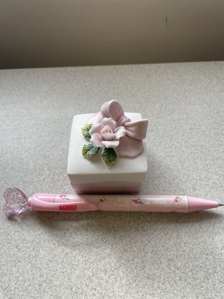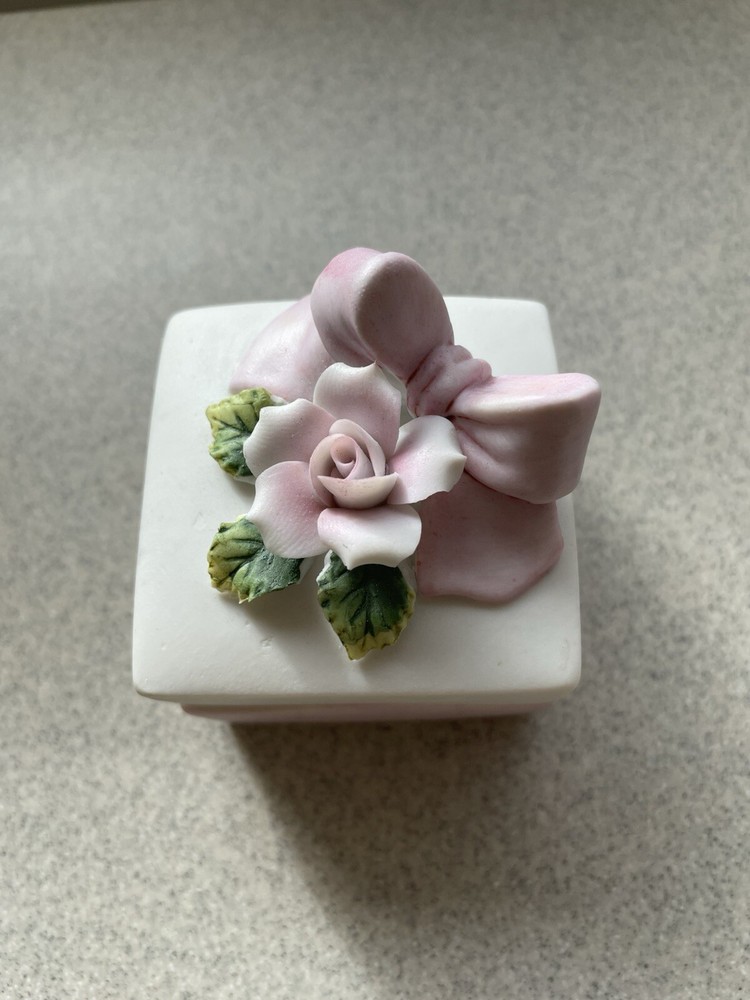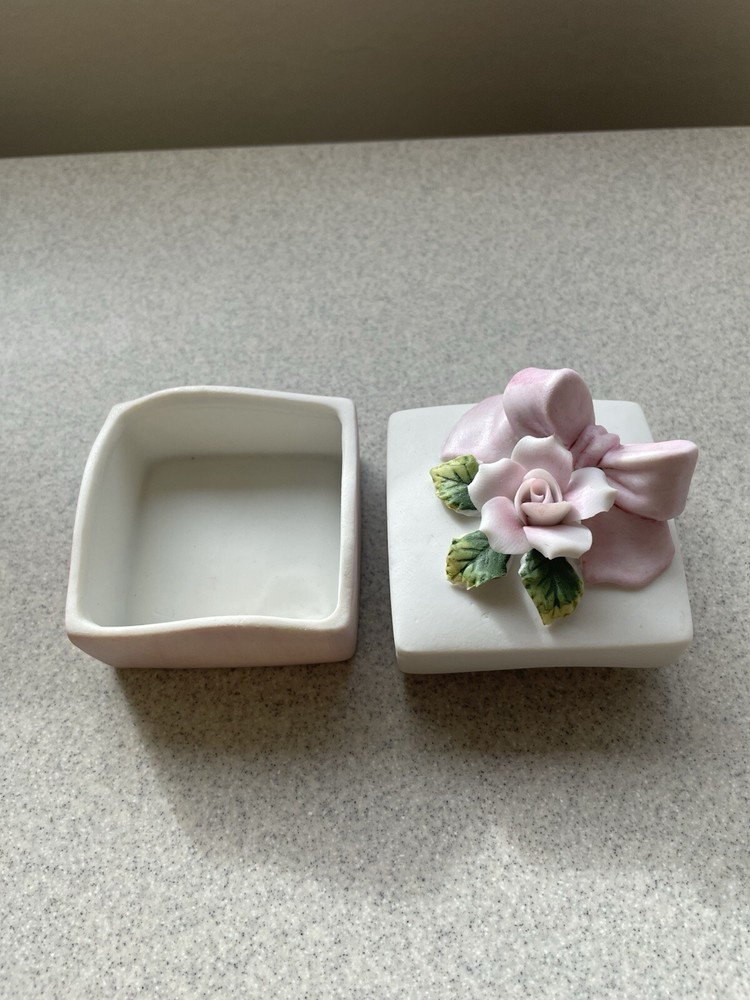 This beautiful vintage jewelry box from Lefton is the perfect addition to any collection. The rectangular shape and small size make it a unique and delicate piece. The pink ceramic material is adorned with hand-painted roses and a paired finish, giving it a 1980s style that is both elegant and timeless. The Love collection features this lovely rose-themed box, which is perfect for adults who love decorative collectibles. The jewelry box was manufactured in China between 1980-1989 and is in excellent condition. Add this beautiful piece to your collection today!