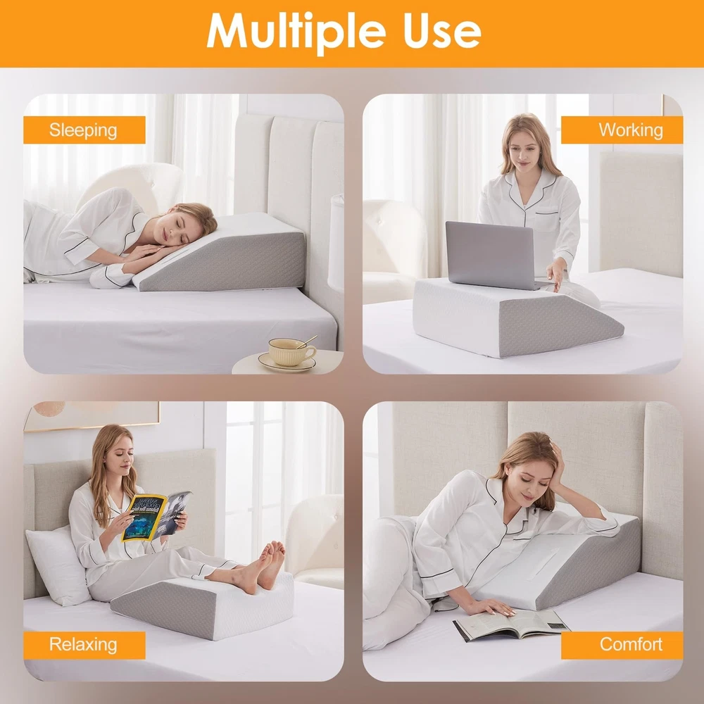 Leg Elevation Pillow for After Surgery, 8inch Foam Leg Elevating Pillow for Swelling and Blood Circulation, Leg Wedge Pillow for Sleeping, Knee Pillow for Knee Hip Ankle Pain Relief, White Product Details Size: Flat Top 8 Inch Color: White/Grey Brand: Ruqmuis MPN: RUTX8KQCBH UPC: Does not apply EAN: Does not apply Brand: Ruqmuis Special Feature: Removable Cover Color: White/Grey Size: Flat Top 8 Inch Fill Material: Foam Brand: Ruqmuis Special Feature: Removable Cover Color: White/Grey Size: Flat Top 8 Inch Fill Material: Foam Shape: Wedge Age Range (Description): Adult Recommended Uses For Product: Sleeping, Reading, Post Surgery, Sitting, Improve Circulation, Leg Swelling, Back/Shoulder/Neck Pain Use for: Whole Body Material: Foam Item Firmness Description: Soft Product Care Instructions: Machine Wash Number of Pieces: 1 Pattern: Solid Material Feature: Breathable Model Name: Leg Elevation Pillow Manufacturer: Ruqmuis Product Dimensions: 8"L x 8"W Unit Count: 1.0 Count Item Weight: 3.94 pounds Country of Origin: China Item model number: RUTX8KQCBH Date First Available: December 28, 2023 Versatile Pain Relief: Our leg elevation pillows provide versatile relief from back pain, knee pain, restless leg syndrome and post-surgery discomfort. The ergonomic design targets specific areas to alleviate various forms of discomfort. Premium Materials for Lasting Comfort: Crafted with CertiPUR-US certified foam, this wedge pillow for legs offers a perfect balance of softness and support. The two-layer foam construction ensures durability, preventing flattening over time and providing lasting comfort. Offer Comfort for Multiple Activities: Our leg support pillows are designed to enhance your experience while sleeping, reading, relaxing, or working. The adaptable design provides customized support, alleviating swelling and discomfort in the legs, knees, and feet for a personalized and versatile experience. Smart and Convenient Design: The inclusion of dual handles on the front allows for easy repositioning, making it convenient for users to adjust the leg wedge pillow according to their preference. The non-slip design at the bottom ensures stability during use. Luxurious and Stylish Design: Featuring a jacquard pillowcase, our knee wedge pillows are not just functional but also add a touch of style to your bedroom. The removable, machine-washable cover ensures a clean and elegant appearance.