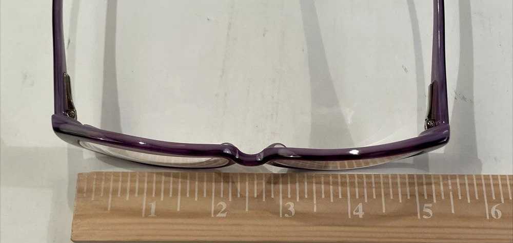 MPN: Does Not Apply Style: Cat Eye Type: Eyeglasses Bridge Width: 15 mm Brand: Legacy Lane Temple Length: 140 mm Department: Unisex Adults Seller Notes: “Pre-owned. See photos for condition details and measurements.” Frame Color: Purple Lens Socket Width: 54 mm