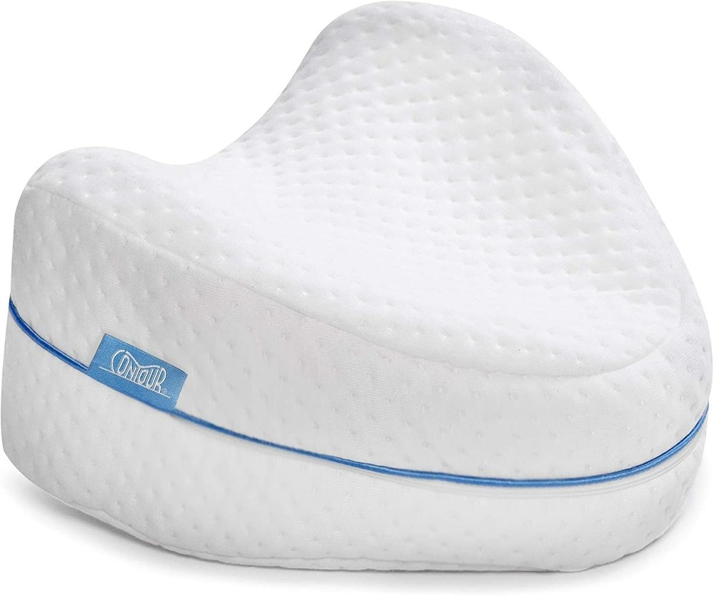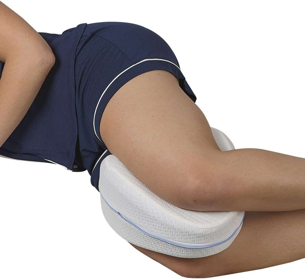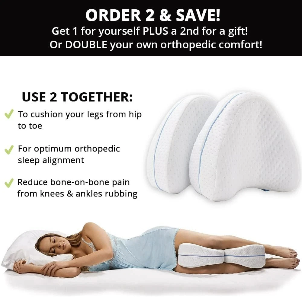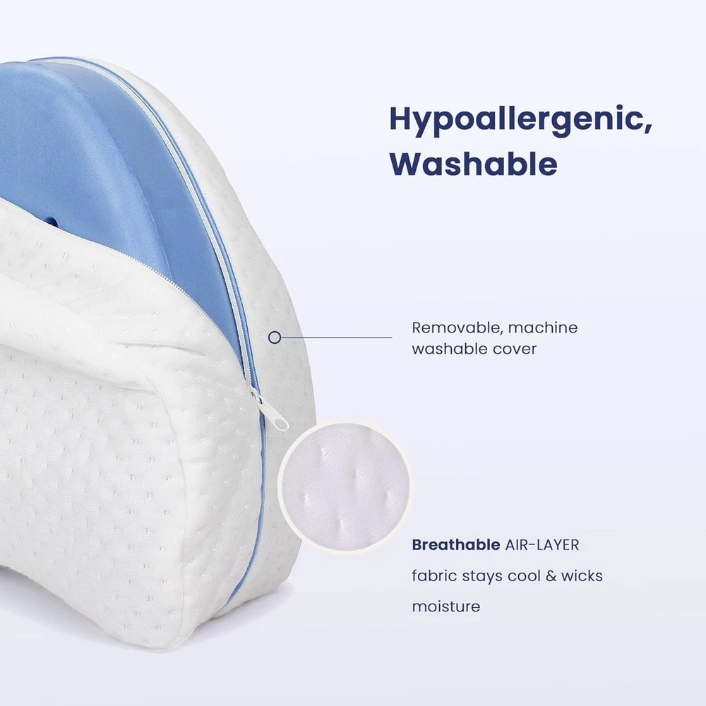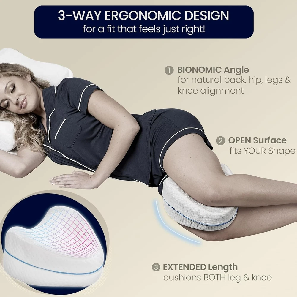 Legacy Leg & Knee Foam Support Pillow for Side Sleepers Soothing Relief for Back, HIPS, Knees, Joints, Nerves & Muscles ORTHOPEDIC LEG PILLOW TO HELP REDUCE BACK, HIP, LEG, KNEE & SCIATICA NERVE DISCOMFORT- As a side sleeper, you don’t sleep perfectly straight. Your top leg drops in front of you putting pressure on your back, your hip joints twist & your knees touch, causing pain. The Legacy Pillow is the best leg pillow cushion for those looking for relief as the cushion comfortably supports your legs & knees to provide proper sleeping alignment & positioning to eliminate those painful pressure points. THE ONLY LEG PILLOW THAT SUPPORTS BOTH YOUR LEGS & KNEES – When we first invented our leg pillow back in the early 90’s (the hour glass shape that so many companies have now copied), our goal was to improve sleeping alignment to reduce pain. The leg pillow was invented to help reduce pressure that occurs from bad sleeping posture which causes discomfort. s later we realized that cushioning & supporting BOTH your legs & knees are important in maintaining proper alignment to help reduce pain. VENTILATED MEMORY FOAM ALLOWS AIR TO CIRCULATE FOR A COOLER NIGHTS SLEEP – Unlike traditional memory foam leg pillow that are designed to absorb your body heat in order to compress, the Legacy Leg Pillow is designed with ventilated air holes in the memory foam that promote air circulation throughout the night. The temperature regulating foam technology pushes the heat outwards away from your body, to prevent you from feeling like you are overheating. SLEEP COMFORTABLY IN ANY POSITION & MOVE FREELY THROUGH THE NIGHT – Unlike traditional knee pillows, the Legacy features a true ergonomic design with its soft curves & crescent shape to fit men & women comfortably. Without requiring hazardous, circulation restricting straps, the precise tether of the pillow s to fit the natural shape of your legs. This allows the foam leg pillow to to your shape without restricting movement or requiring you to sleep in a certain position. 1 Customer Care Manfuacturer satisfaction Product Protection