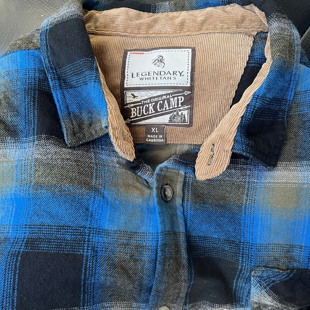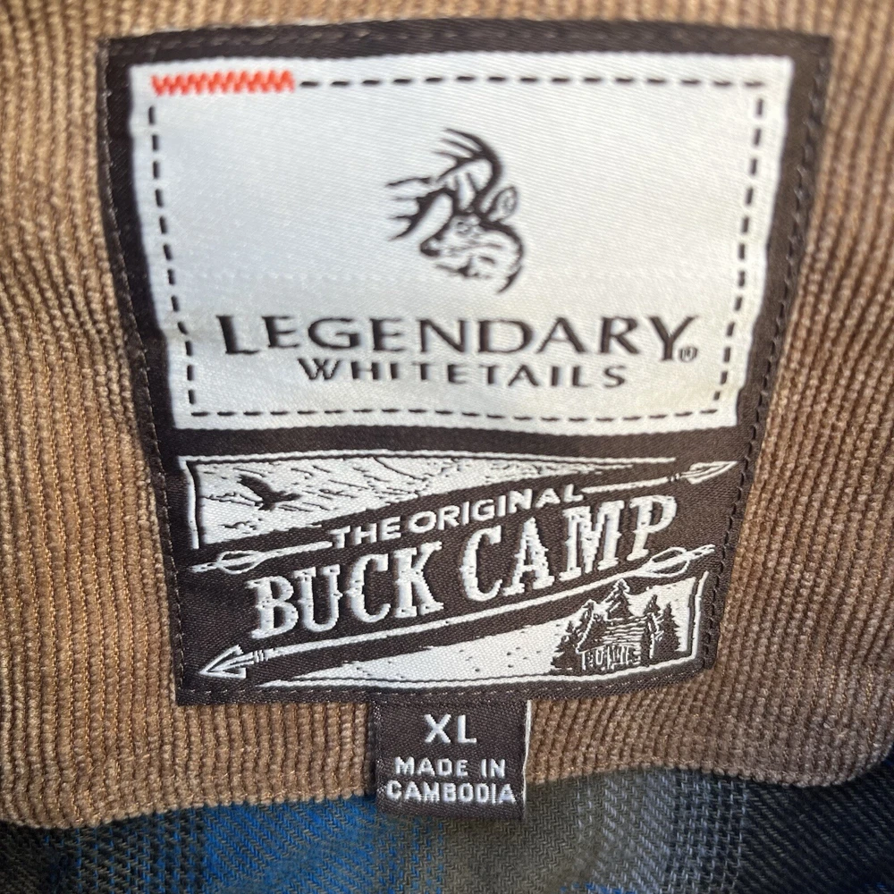 Legendary Whitetails Buck Camp Flannel Shirt Men's Size XL Blue Brown Plaid