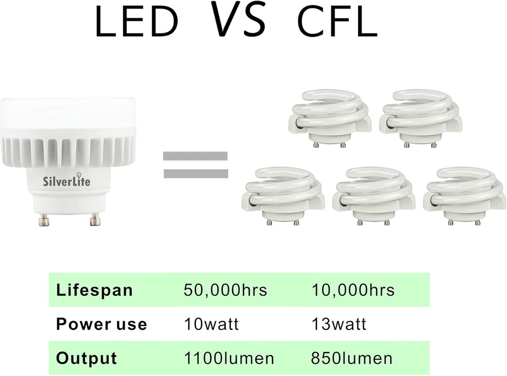 Store New Arrivals Add to Favorite View Feedback Contact Legental 10W LED Mini Puck GU24 Squat Light Bulb,18W Low Profile Spring CFL Equivalent,50000Hrs Lifespan,1000Lm,Soft White(2700K),120-277V,Wet Location Suitable,Ul Listed Description Light Source Type CFL, LED Item model number 43211-5871 Style Non Dim-GU24 Number of Items 1 Power Source Corded Electric Control Method App Power Consumption 10 Watts Specification Met UL Controller Type Push Button Unit Count 1 Count Batteries Required? No Finish Painted Light Type CFL Bulb Shape Size T Average Life 50000 Hours Product Dimensions 3.6"W x 2"H Material Aluminum Installation Method Screw-In Efficiency higher than CFL equivalent Model Name 43211-5871 Is Discontinued By Manufacturer No Specific Uses For Product Commercial/Residential Item Package Quantity 1 White Brightness 1000 Lumens Indoor/Outdoor Usage Outdoor, Indoor Light Source Wattage 10 Watts Brightness 1000.00 Country of Origin China Light Color Soft White Item Weight 2.82 ounces Connectivity Technology Normal bulb Special Features shatter-resistant, dimmable Special Feature shatter-resistant, dimmable Color Rendering Index 82 Part Number 43211-5871 Color Temperature 2700 Kelvin Mounting Type Embedded Color Mini 2700k Sensor Technology Light Sensor Wattage 10.00 Incandescent Equivalent Wattage 72 Watts Bulb Base GU24 Shape circular Batteries Included? No Voltage 277 Volts Size 1 Count (Pack of 1) Non dimmable,choose the dimmable version for your ceiling fan since there may be an internal control device in the fan Application:Jelly jars,Closet lights,Pendants,Downlights,Bathroom vanity lights,Track lights,Coach lights,Porch lights UL listed for WET locations,suitable for every room,even outdoors 50,000 hours lifespan,5x longer than CFLs(10,000hours),5 years limited Instant-On and Shatter-Resistant design for both commercial and residential applications REMINDER -Please DO NOT use with dimmers. -Can work with sensors. -As tested by our engineers and buyers,this non-dimmable bulb will get flicker when work with some ceiling fans, especially Hunter ceiling fan since there is an internal device to control the speed and light with the same wire,please choose the dimmable version for your ceiling fan. Money-Saving 10watt=18watt.Legental LED PUCK is 18watt low profile spiral CFL equivalent with ultra-efficiency while only 10watt used. Lower Profile Design Legental PUCK bulb has a very low profile design, which allows fit into shallow fixture housings. Eco-Friendly Contrary to CFLs,Legental LED bulbs contains NO lead or mercury,better for the environment. Longer Lifespan Legental LED PUCK is rated at 50,000 hours. It is 5x longer than CFLs(10,000hours),meaning far fewer service cycles and far fewer replacement bulbs. 5-year Limited Legental LED PUCK backed up a 5-year , Guaranteeing the need for minimal servies or bulb replacements. Excellent Heat Management With die casting aluminum heat sink, Legental LED PUCK has better performance in heat dissipation, which allows to be used in totally enclosed luminaires and delivers longer life than other bulbs. UL Listed Legental LED PUCK are UL approved for WET locations. Suitable for indoor and outdoor applications. APPLICATIONS: Can be used for most CFL applications:Ceilling fans,Jelly jars,Closet lights,Pendants,Downlights,Track lights,Coach lights,Porch light... SPECIFICATIONS: - Power:10watt - Output:18watt CFL Equivalent - Voltage:120-277V - Brightness:1000lumens - Color Temperature:Soft White(2700K) - CRI:80+ - Operating Temperature:0°F to 104°F. ABOUT US We offer the best prices around on high quality products. Our E-store includes media such as books, movies, music and games while offering electronics, toys, sporting apparel, clothing, tools, general home, garden items and more. SHIPPING We are always working hard to ensure your package arrives as soon as possible. Please understand that some factors like weather, high postal traffic, and the performance of shipping companies are outside of our control. We offer free shipping to the lower 48 states and ship within 2 business days of payment, usually sooner. We do not accept P.O. Boxes. Please provide a physical address. RETURNS We offer a 30-Day Return Policy on items which you are not completely satisfied with. You have the option for a full-refund or an exchange of the item. No returns are available on items shipped outside of the USA. PAYMENT We accept PayPal. CONTACT US This page content is yet to come Please ad us to your favorite seller and visit again later Thank You CUSTOMER SATISFACTION We try our very best to make sure every customer is completely satisfied. If there's a problem, message us! We're happy to help.