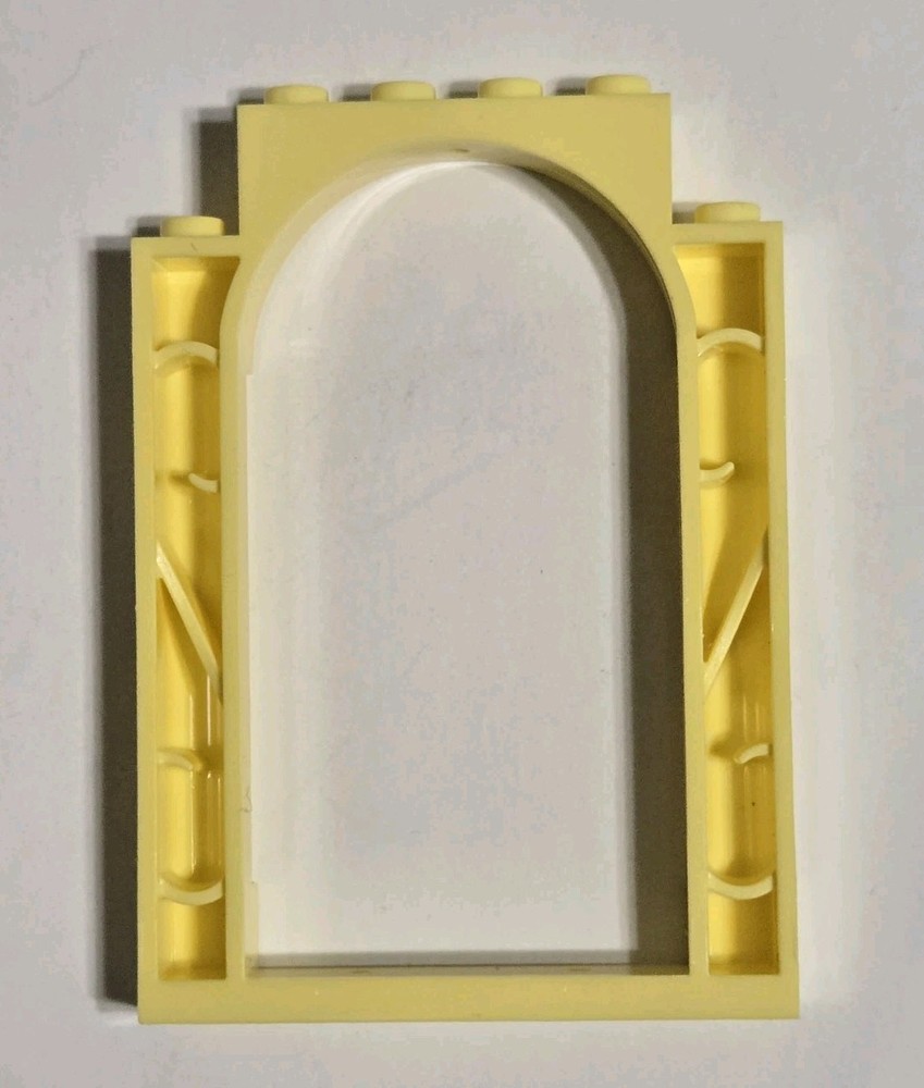 The Lego 40066 Door Frame 1x6x7 Arched with Notches is a plastic building toy from the LEGO brand. This yellow door frame features an arched design with rounded pillars, making it perfect for adding a realistic and decorative touch to your Lego CITY or Friends sets. With its detailed architecture and notches for easy connection, this piece is sure to enhance your building experience and add a unique touch to your creations. Perfect for Lego enthusiasts interested in architecture and creating intricate, detailed structures.