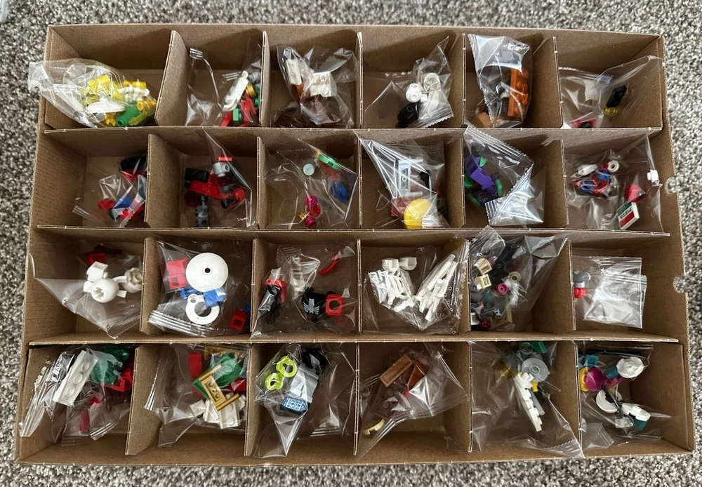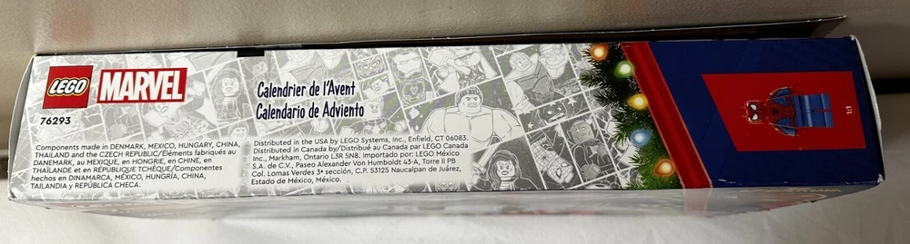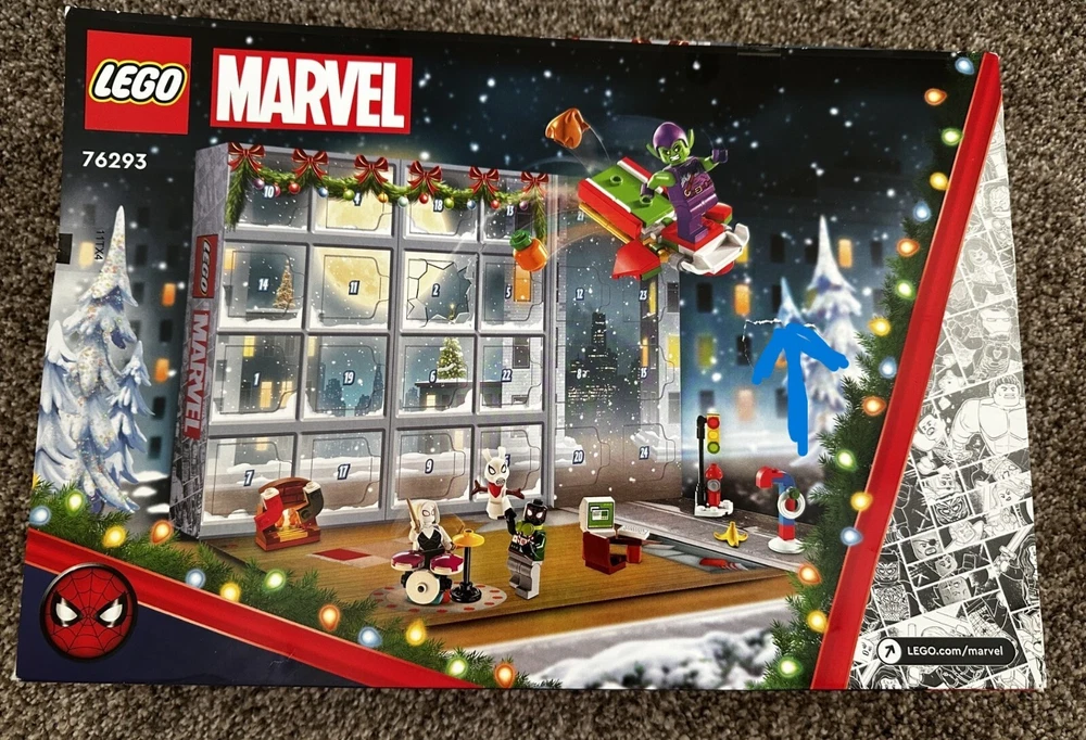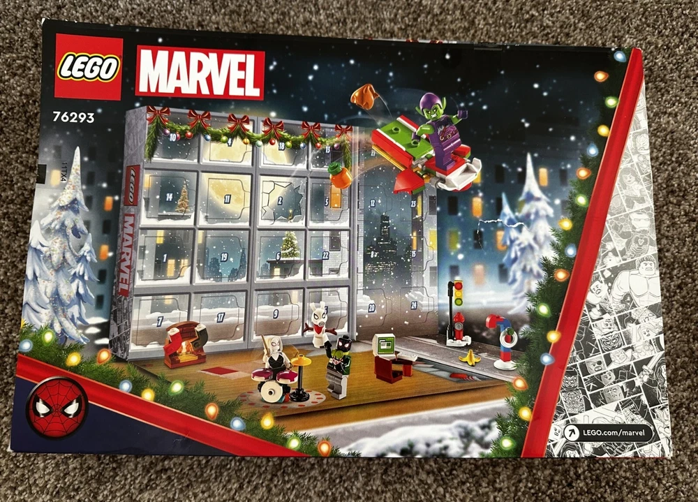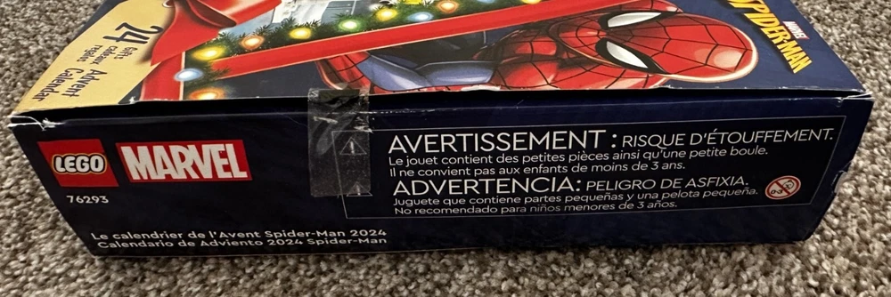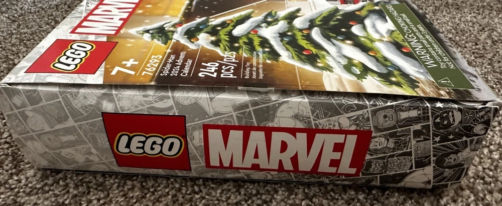 NEW Lego 76293 Marvel 2024 Spiderman Advent Calendar in Open Box. All items are sealed. Box has some cosmetic imperfections (small tears) which are shown in the last three pictures.
