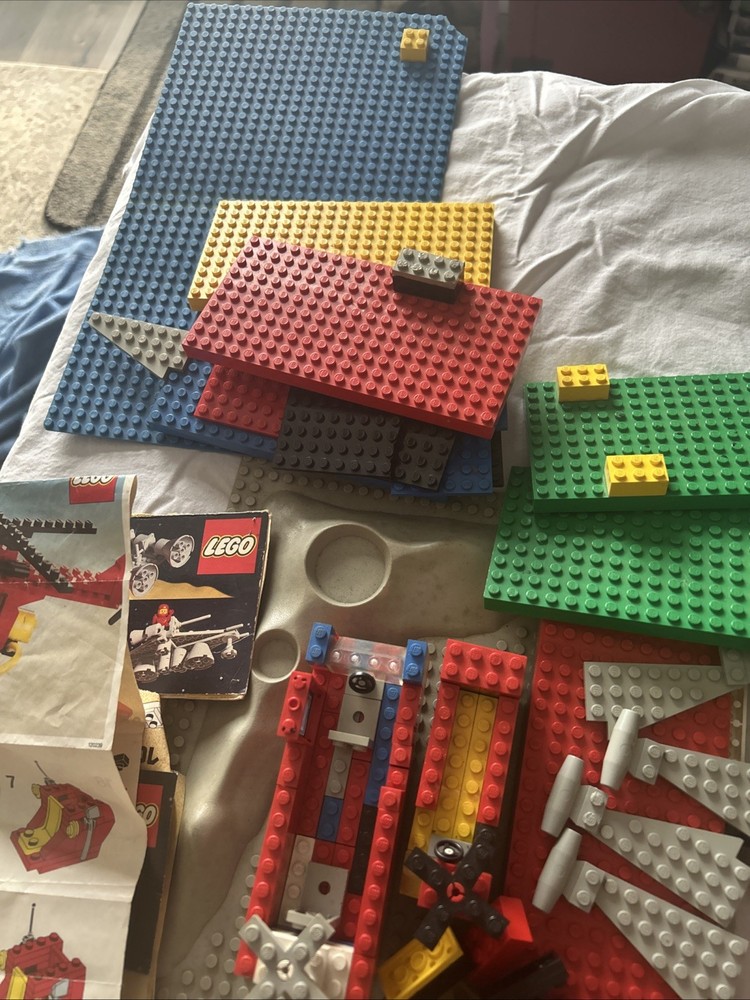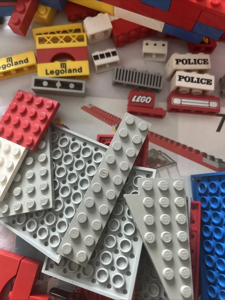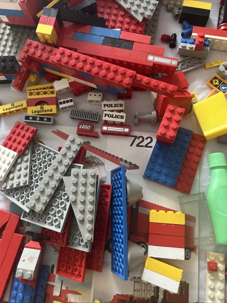This product is a bulk lot of vintage LEGO bricks from the 1970s, specifically featuring a Coast Guard station building set (Set 722). The set includes a variety of LEGO bricks and pieces, perfect for enthusiasts interested in building and creating their own coast guard station. These nostalgic bricks offer a unique building experience with a retro twist, ideal for collectors or hobbyists looking to expand their LEGO repertoire with a touch of history and nostalgia. Misc. Instruction LEGO instruction manual, vintage instructions for 722, incomplete set, really do not know what is.what, good project for youngster! Inherited these Legos!