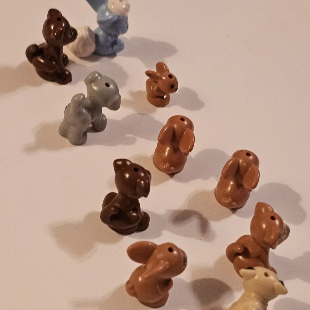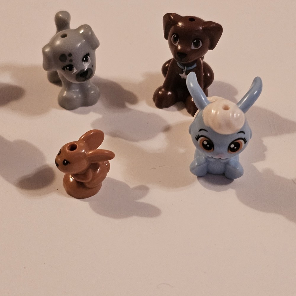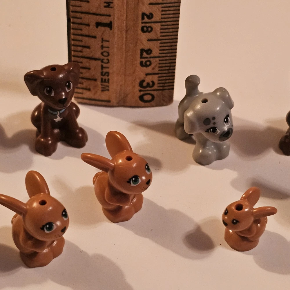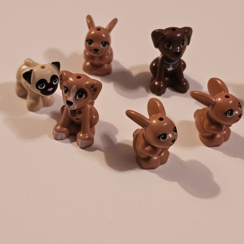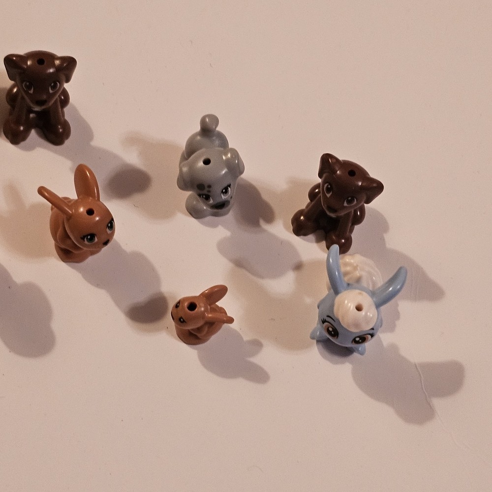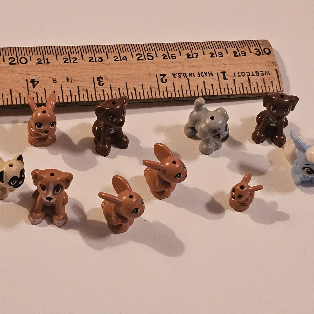 This product is a lot of 10 LEGO minifigures featuring various animal characters including dogs, bunny rabbits, and other animals. Each minifigure is made of plastic and comes in a multicolor design, perfect for LEGO enthusiasts who enjoy building with animal-themed figures. The lot offers a variety of animal figures to add to any LEGO collection, appealing to those with interests in animals and imaginative play. See photos for wear sold as is