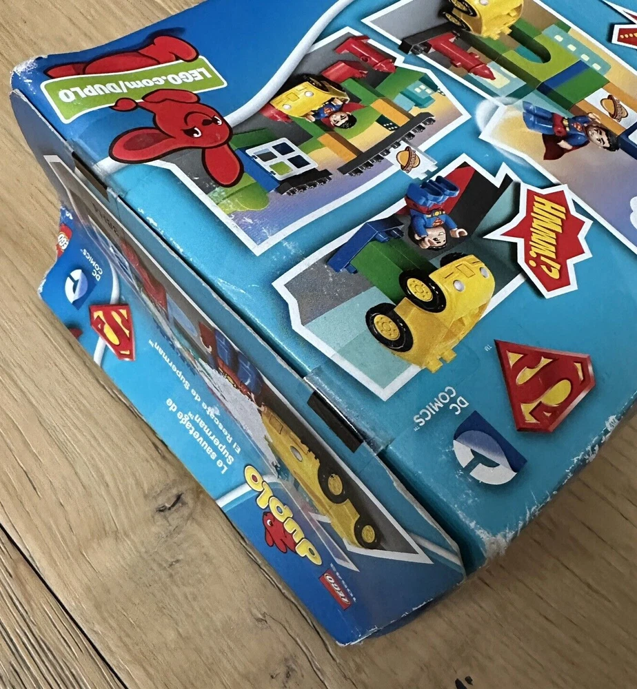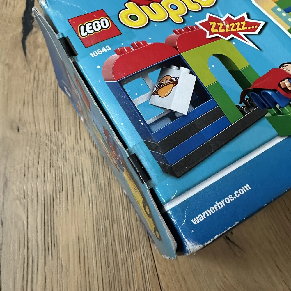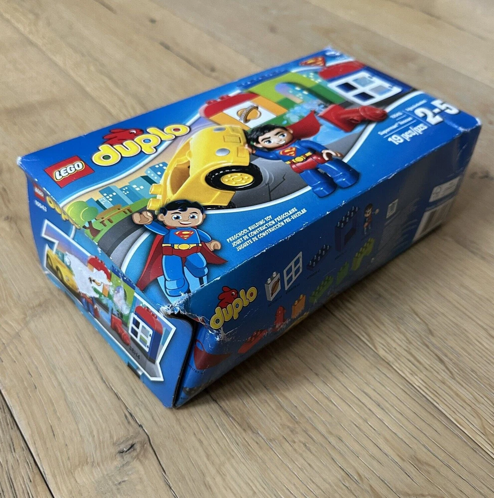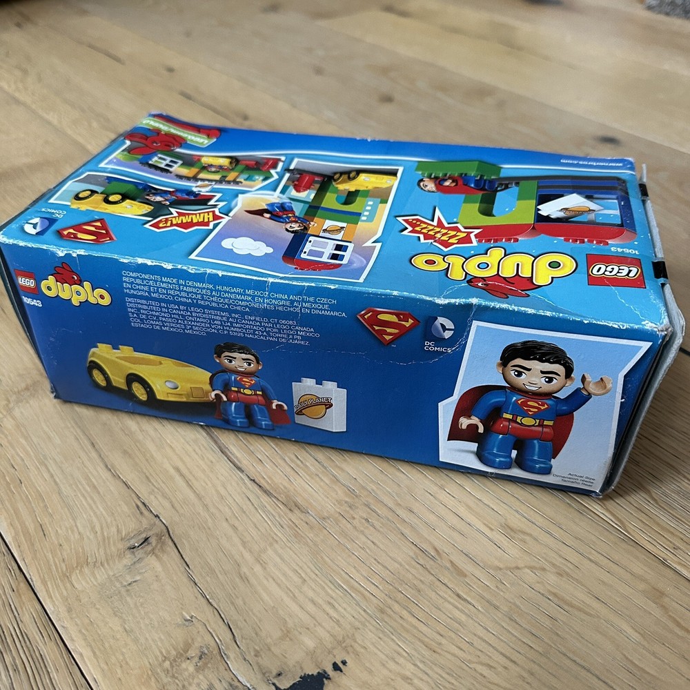 Lego Duplo 10543 DC Comics Superman Rescue NEW Still Factory Sealed 19pcs Includes Superman Figure, Daily Planet Newspaper logo block, car, fire hydrant and more! For ages 2-5 yrs New in original sealed box (see photos). Box shows lots of shelfwear with scuffs, dents or creases. You can see the original factory tape on both ends of the box, never opened. Great retired set to add to your toddler's superhero collection!