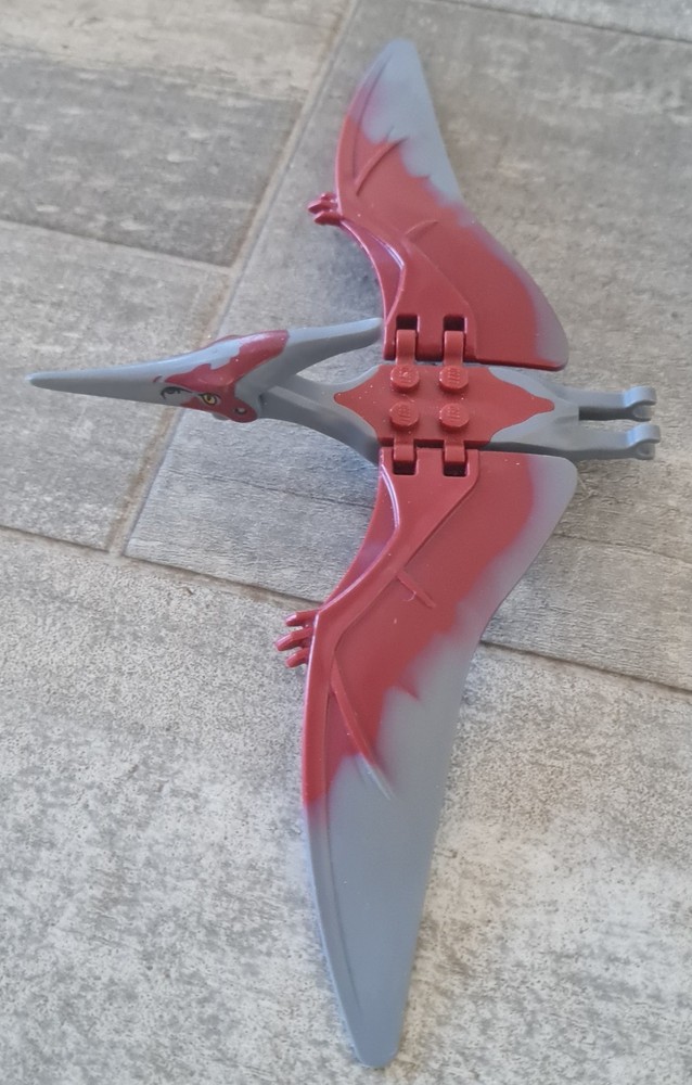 Missing Bottom Part.The Lego Jurassic World Pteranodon Flying Dinosaur is a plastic minifigure released in 2018 as part of the Jurassic World LEGO subtheme. This set, with item number 75915, features a dark red and grey Pteranodon dinosaur from the Dinosaur LEGO theme. Made in Denmark by the LEGO brand, this retired set (10756) allows builders to create a realistic and fun Pteranodon Chase experience for fans of Jurassic World and Lego building toys.