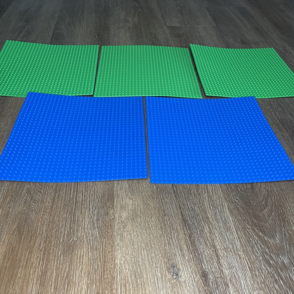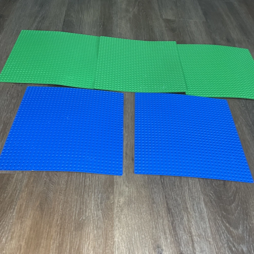 This lot of 5 LEGO baseplates are 10”x10” and are 32x32 dots. These baseplates are warped but can still be used well. Look at photos showing imperfections. Check out my store for more LEGOS! All items are packaged with care and consideration. Thank you!!