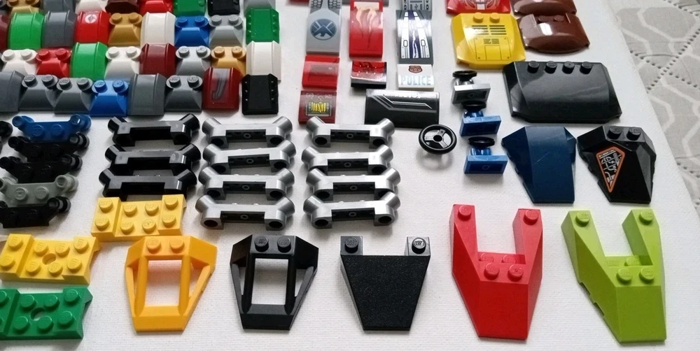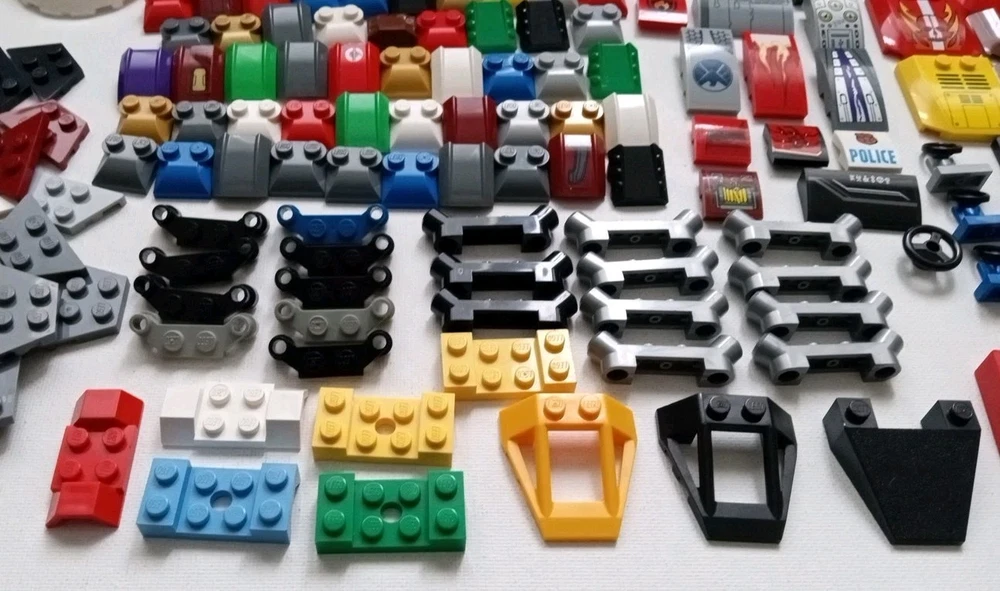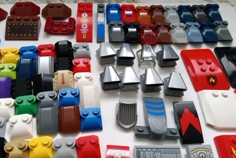 Lot includes genuine Lego multi-color specialty pieces for endless building applications. The set contains all pieces as shown in the actual photos. Ideal for Lego enthusiasts and building toy lovers. Pieces are a mix of older and newer and show color variations. Some pieces may show areas of minor surface wear.