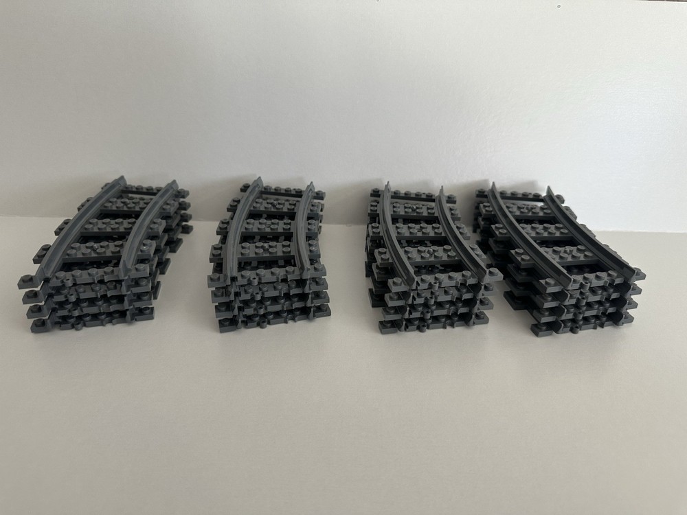 The product is a set of 16 LEGO train track pieces in a curved circle shape. This new part number 4279717 is part of the LEGO Train Tracks set, designed for ages 16 and up. It caters to individuals interested in trains and train-themed LEGO building toys. The pieces are from the well-known brand LEGO, known for their high-quality building toys and creative play opportunities.