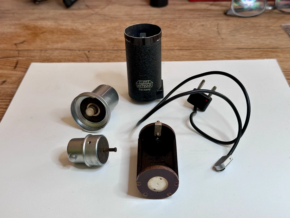 For Sale: Leica Leitz CEYOO Synchroblitzer vintage flash bulb unit. Includes cord but no reflector. Don't know much about this unit. Clean battery compartment free from corrosion. Overall v. good-excellent cosmetic condition. Flash bulb sockets show evidence of use but no damage. Some brassing on side cold shoe (see pictures). Includes sync cord which tests good for continuity and no shorts. Requires hard-to-find 'B' type 22.5 v. battery so could not test.