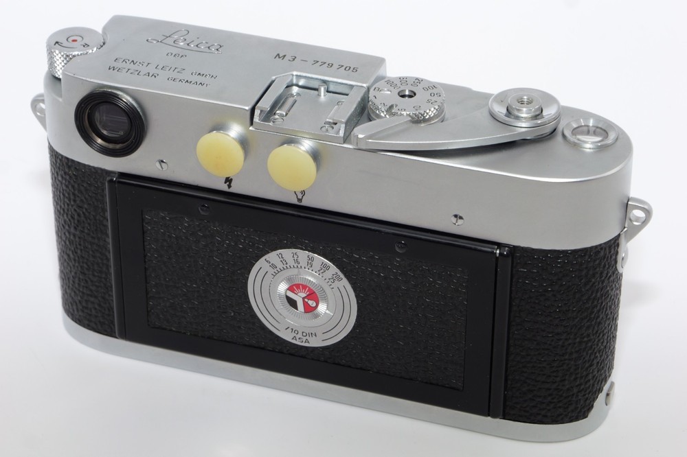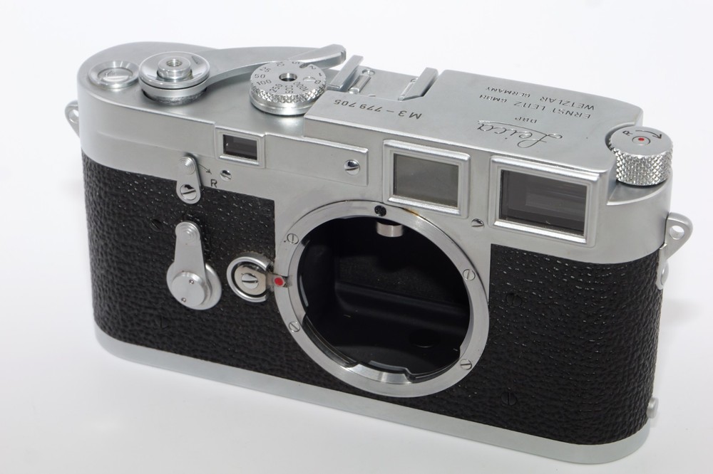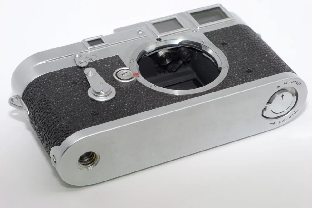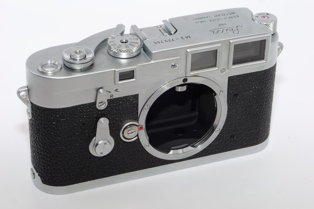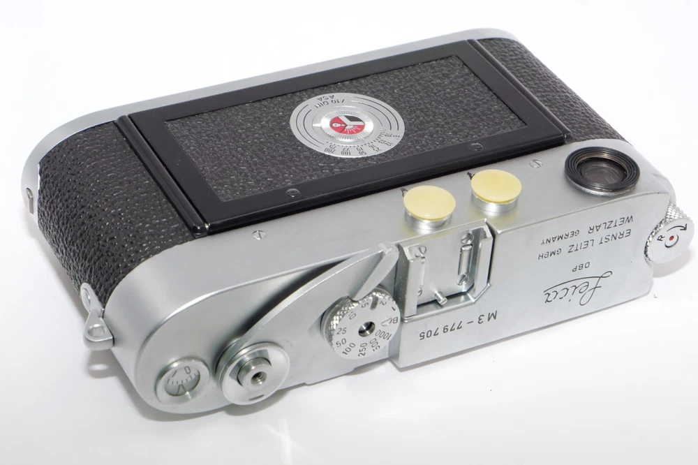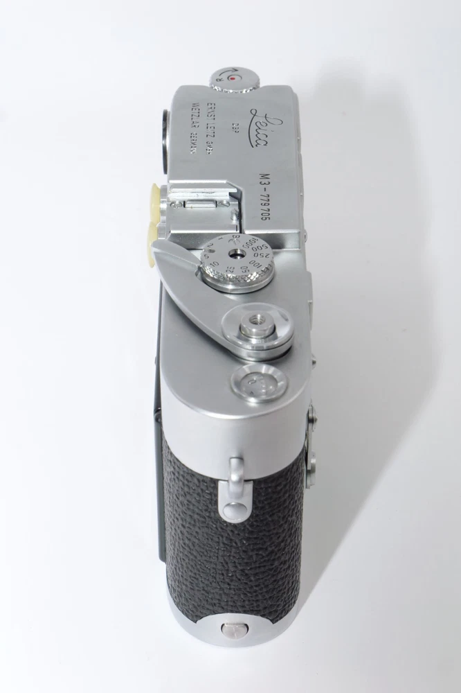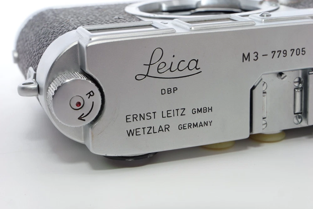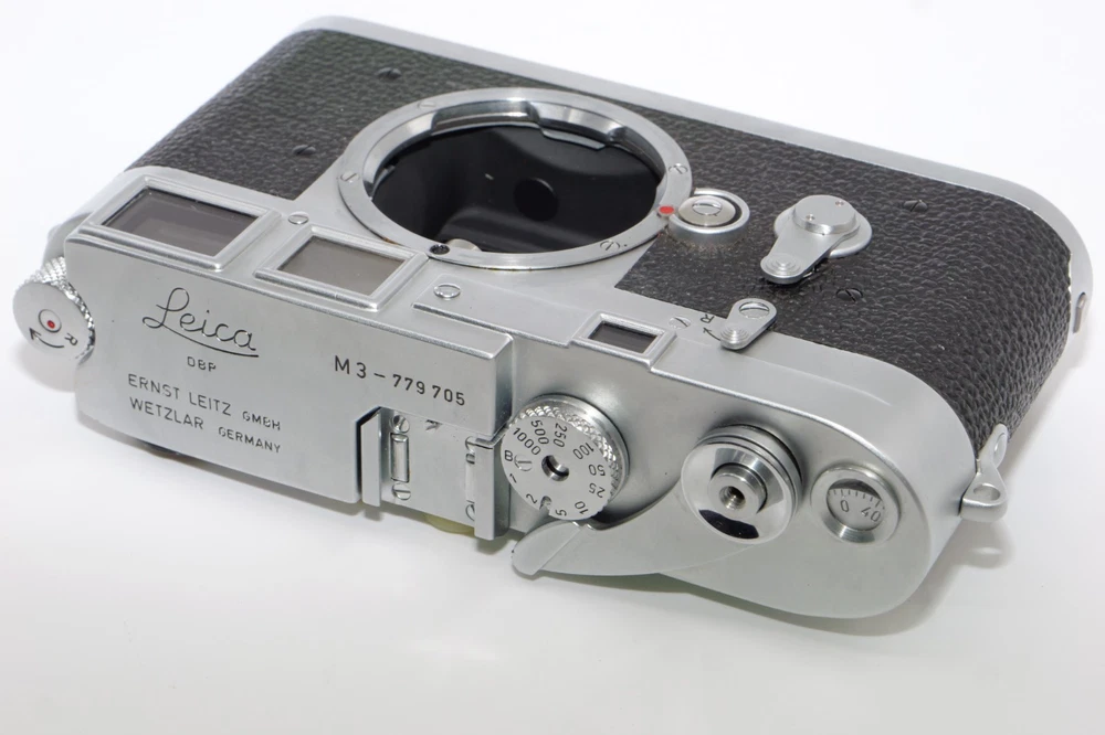 Leica M 3 Double Stroke rangefinder camera. Made in Germany in 1955. Serial #779705. This camera recently was fully CLA'd best as possible for a vintage camera in November 2025. Use all Leica M-mount and Leica Tread Mount lenses (with adapter). Also could use other brands M-mount and Screw-mount lenses, like Voigtlander-Cosina, Canon-RF, Konica-RF and others. Built-in rangefinder. Shutter speeds are: 1sec -1/1000 on non-rotating dial. Shutter in good working order. Good condition shutter curtains. Clean viewfinder. Working, bright and contrasty rangefinder. Contrast and bright frame lines. Working self-timer. Camera is in Ex++/Mint- or 9/9.5 out of 10 cosmetic condition. No dings or dents. Mint- vintage Leica M3 double stoke camera EXCEPT the top plate has one scratch on it next to the rewind knob(see photos). Bottom plate is clean. Camera body has original Leica M vulcanite in good condition. Original accessory flash shoe. No missing screws or knobs. Smooth film advance. Original take up spool. This vintage camera is a "good shooter" camera in overall nice clean condition; "Classic" Leica M-3 double stroke camera that has been recently CLA'D. Rare camera to find in this nice clean collectible condition. Comes with instructions, body cap, and case w/strap & box. Sells with NO RESERVE at a price of $2295. I have more interesting Leica Rangefinder and Reflex FILM cameras and lenses, Leica DIGITAL cameras and Lenses, Leica Copies, Leica lenses and Leica accessories on my other Auctions, eBay Store and web page.