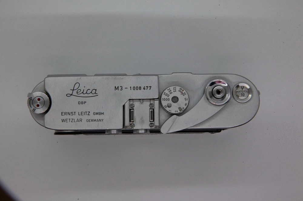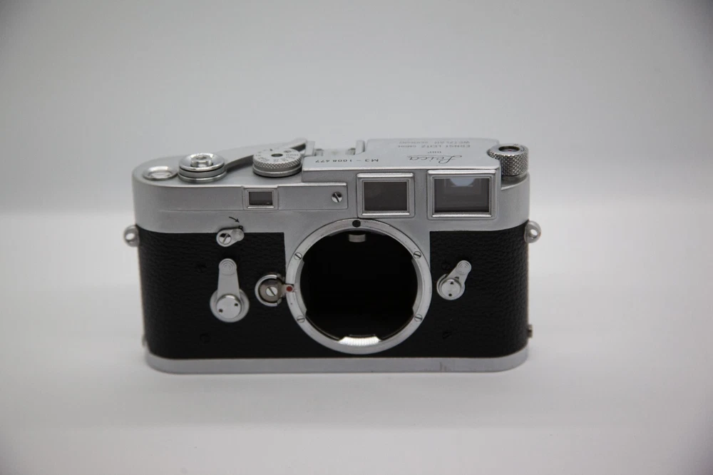 Up for sale is a Leica M3 Single Stroke 35mm rangefinder camera. This camera works wonderfully. I have film tested it myself, as this was my main film camera until I got an M2. The viewfinder looks really clean and clear. There are some scratches on the top and bottom plate, and paint rubbed off a small area(s) on the back film door, which are to be expected from a camera this old. Everything functions well. Seems to have been previously modified to focus down closer than what is normal on an M3. Has not been CLA'd, but it also has never let me down. All shutter speeds work correctly, although, I have no way of knowing how accurate they are since I do not have the equipment to test that. Take a close look at the pictures, since they will be part of the description for this camera. Please do not hesitate to reach out if you have any questions.