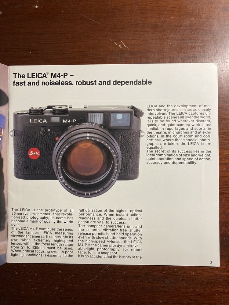 Title/Info: Leica M4-P Vintage 1980s Camera Photography Booklet Classical Rangefinder. Paperback. Stapled binding. 22 pages. 8.5" x 8" Additional Info: Exactly the same as pictured. Scans may not pick up all flaws. (misc 105.050)