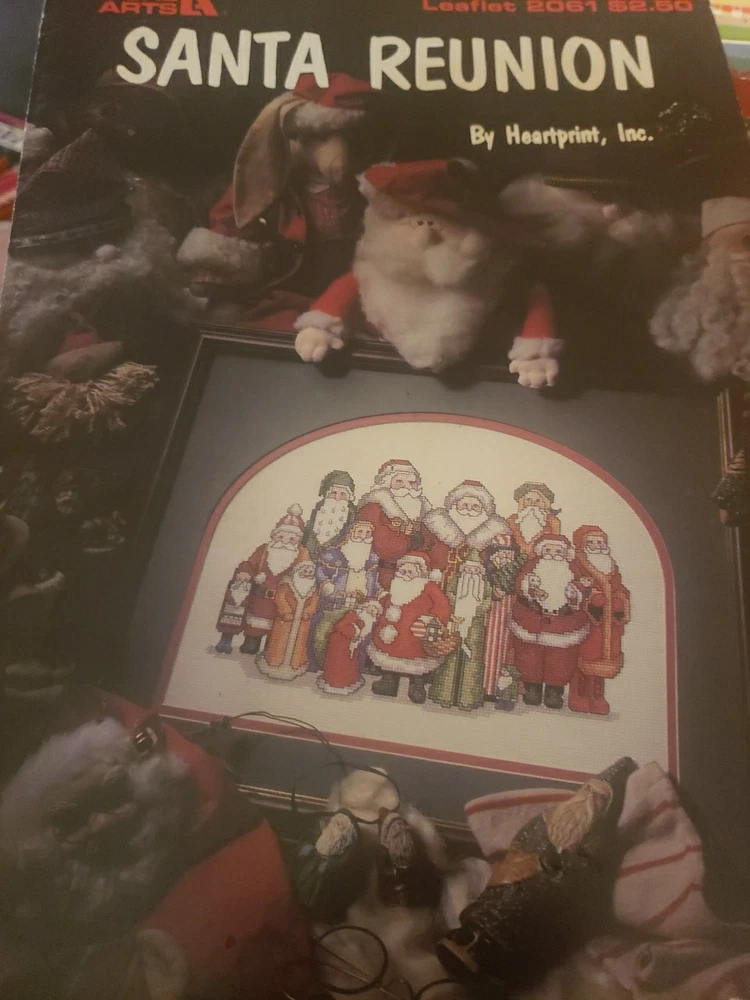 The product is a Leisure Arts leaflet model 2061 featuring a cross stitch pattern for Santa Reunion Christmas. The cross stitch pattern is themed around holidays and is designed for embroidery and needlecraft enthusiasts. This leaflet is from Reunion and offers a festive design for creating a Christmas-themed cross stitch project.