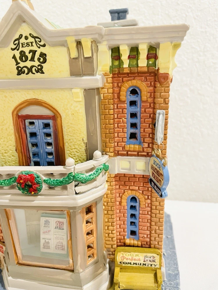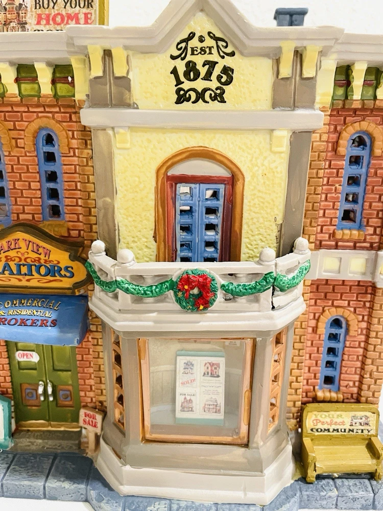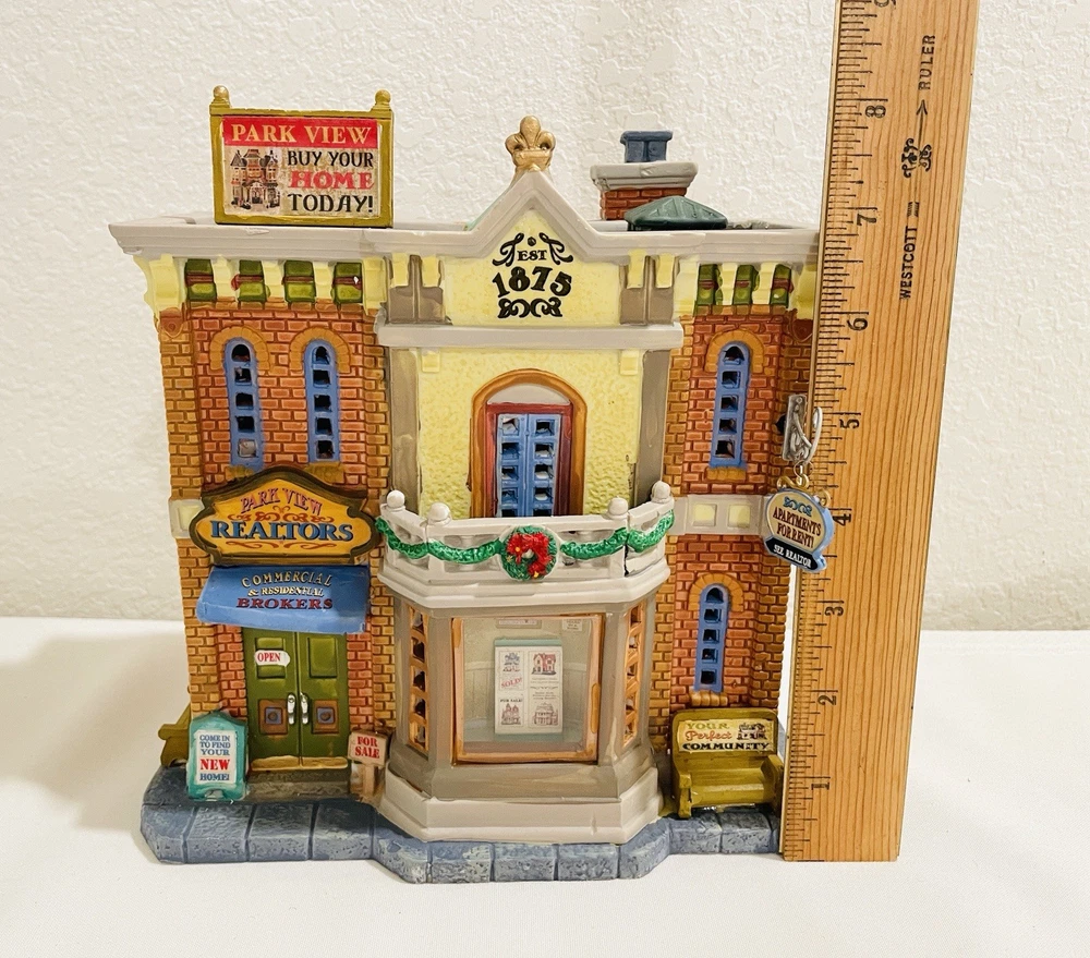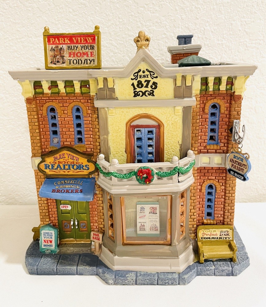 This rare and collectible Lemax 15253 Park View Realtors Building is a must-have for any serious collector. The building is designed with intricate details and features a retired status, making it a valuable addition to any collection. *NO LIGHT CORD IN THE BOX* Thank you for taking the time to view our items. If you have any concerns please ask prior to your purchase, all questions are welcome. By making a purchase, the buyer explicitly recognizes and accepts both the condition and material of the item.