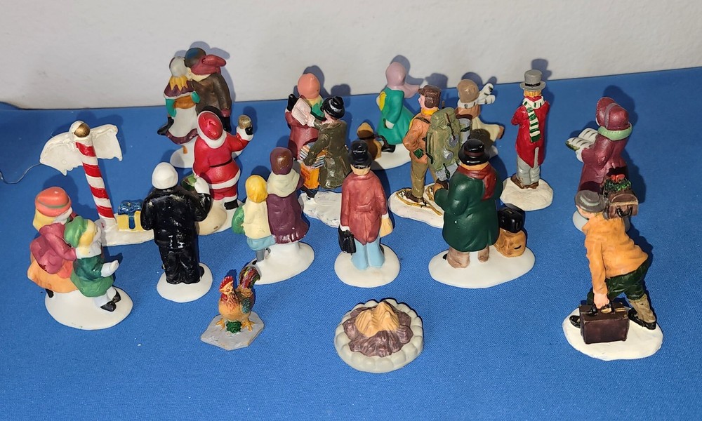 18 Assorted Lemax Townsfolk, People Figurine, Christmas Figures Very Good Condition Note - A few are not people. Sign, chicken Etc., See Photos Average Height 2 1/2" Tall