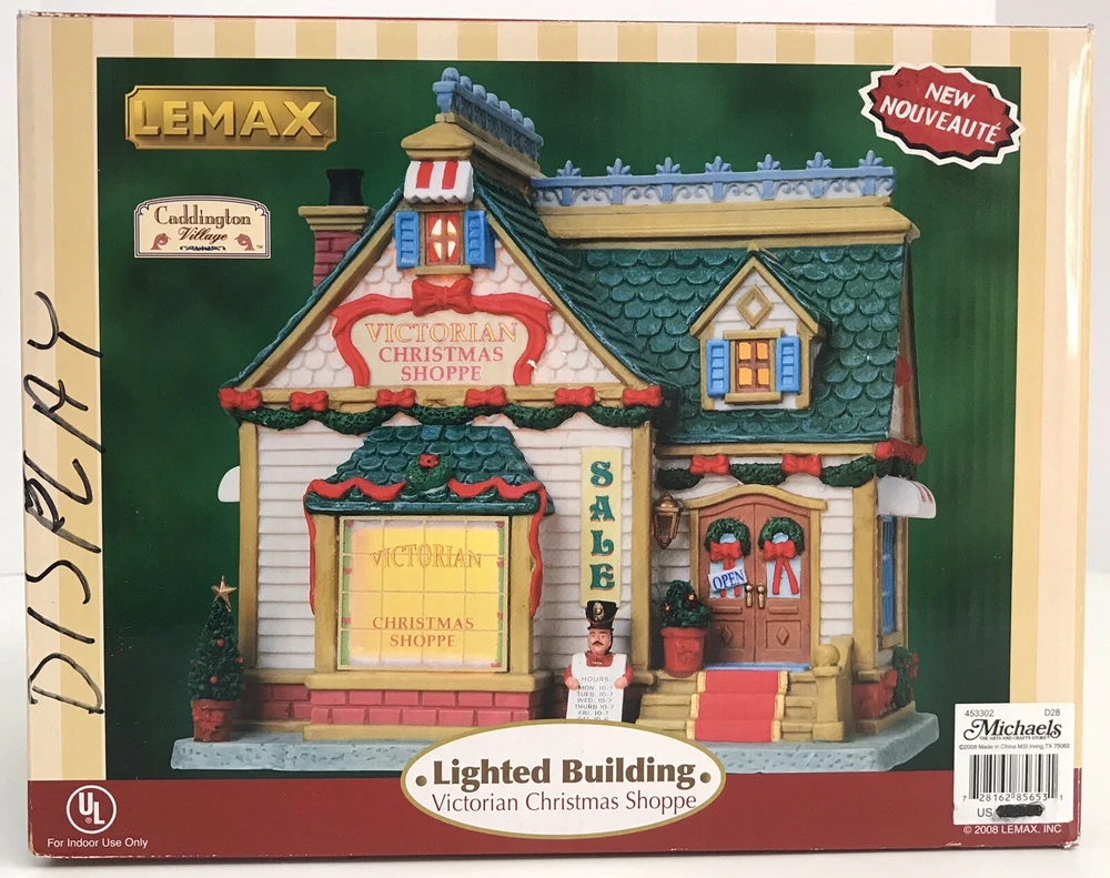Lemax Caddington Village Christmas Victorian Christmas Shoppe - No Light Cord The building is in great condition. No light cord. The box has some writing on it. Please see photos for details.