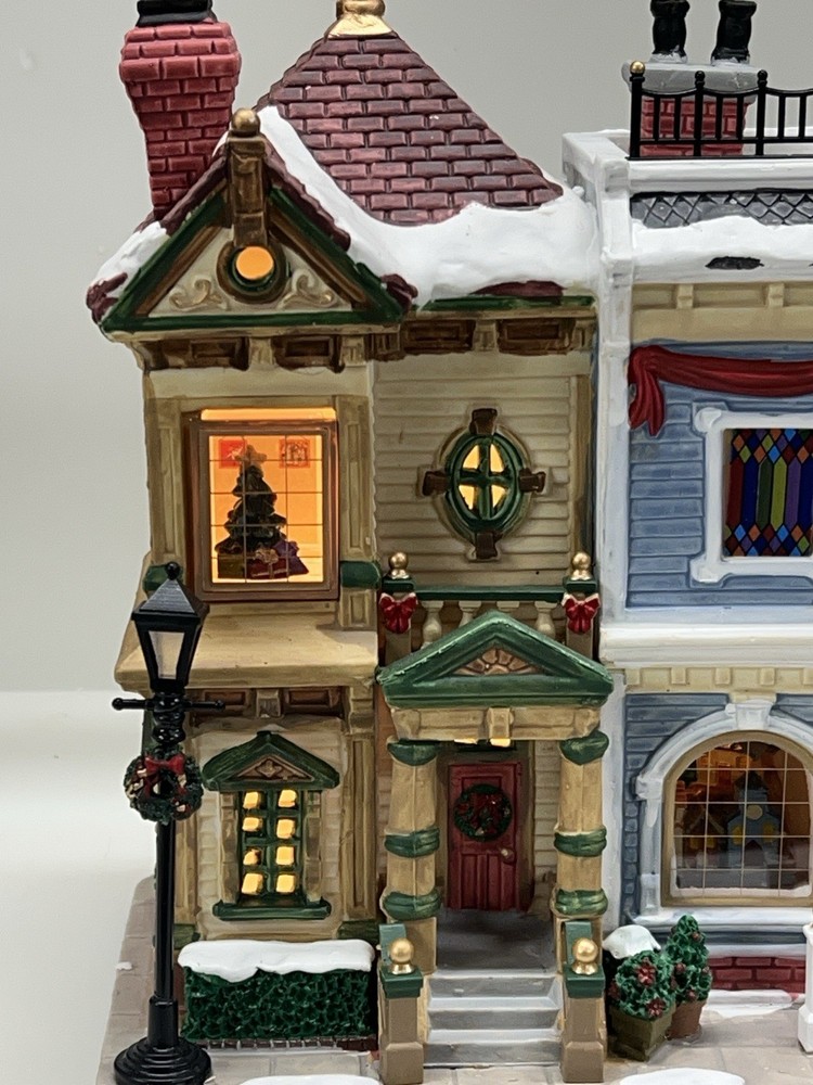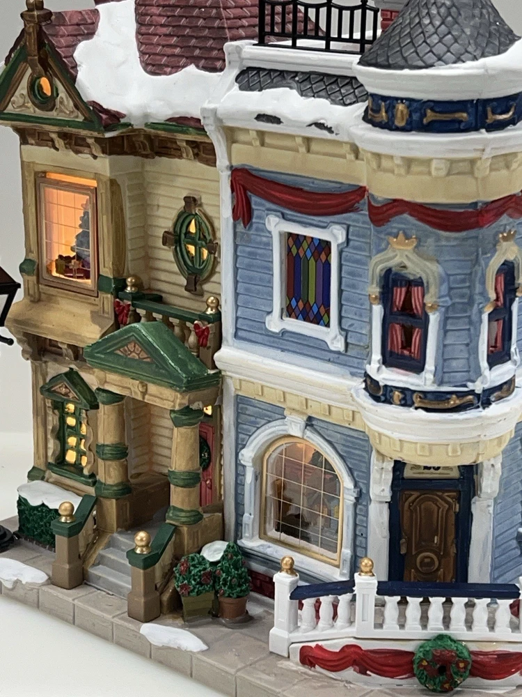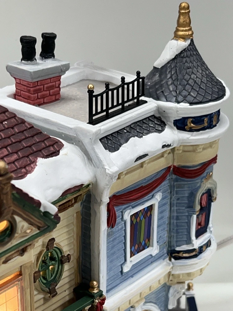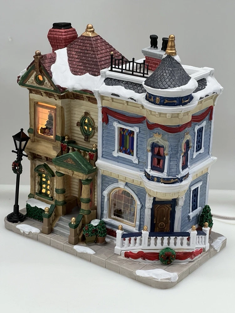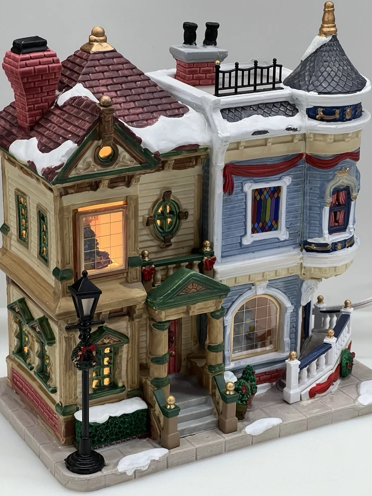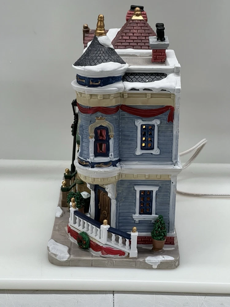 This is a beautiful Lemax "Christmas In The City" 25th Year Anniversary Lighted Building. It features a whimsical Victorian home with hand-painted details and a multicolor finish. The asymmetrical building is illuminated to create a 3D effect, making it a perfect addition to any Christmas village display. This large porcelain piece is boxed and retired, making it a great collector's item. It was manufactured in 2018 in China and is suitable for adults. The building measures 9" in height, 8" in length, and 5" in width. It is an original piece from the 21st century (2000-Now) and is part of the Lemax Christmas In Just a beautiful piece to add to your seasonal village. Comes with all clean original packaging including cord & light . Note : one section of small black fencing missing on roof top otherwise excellent pristine condition.