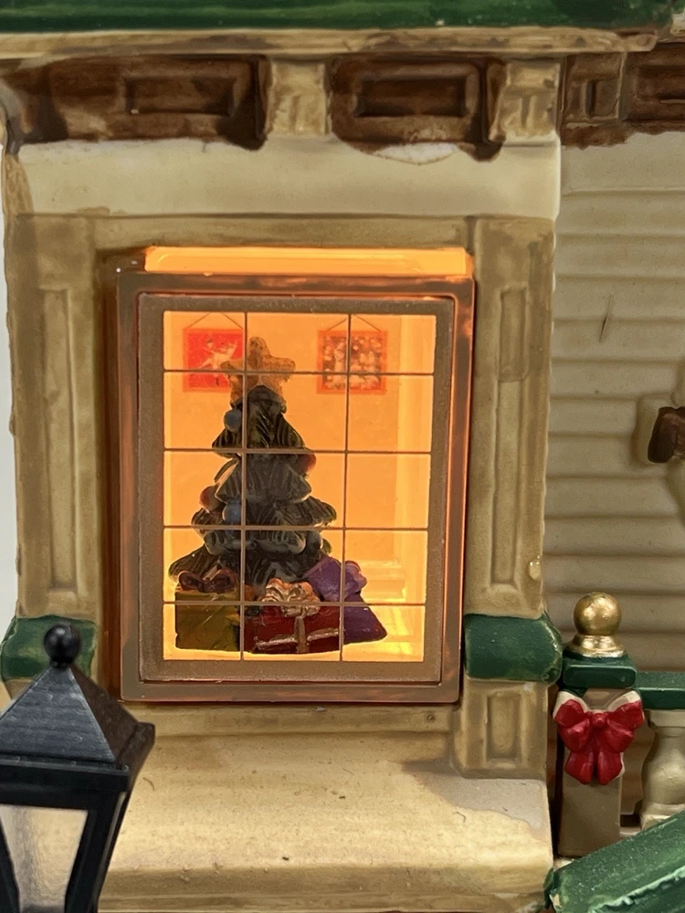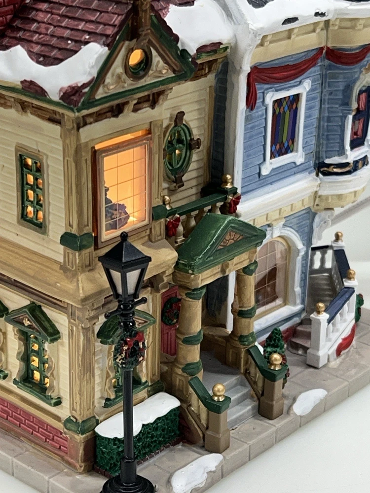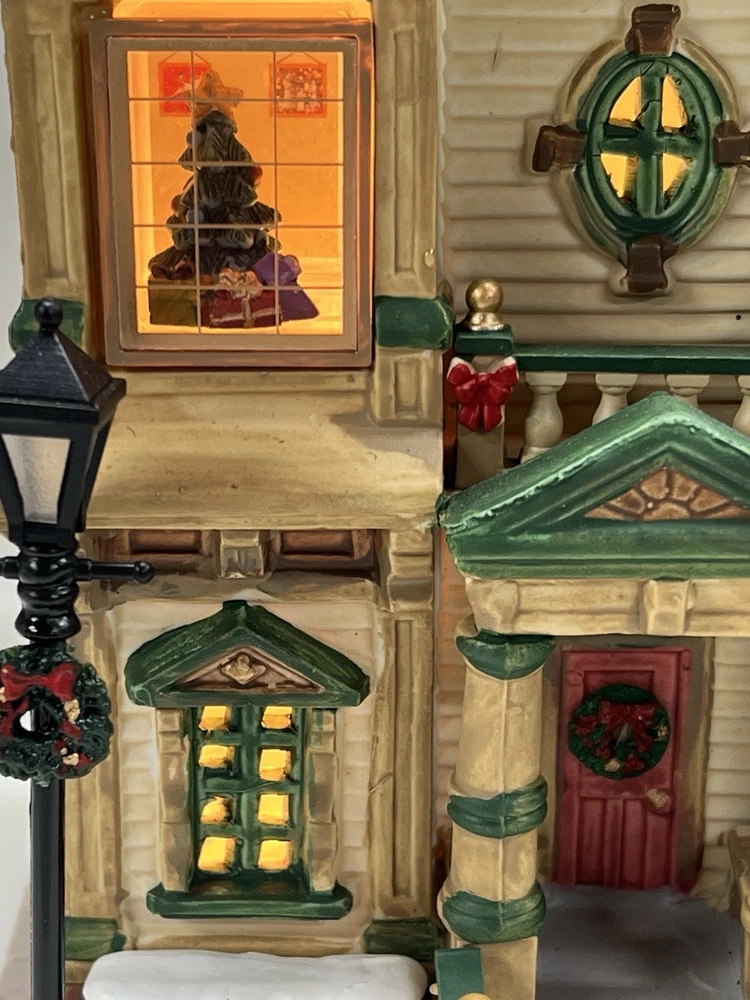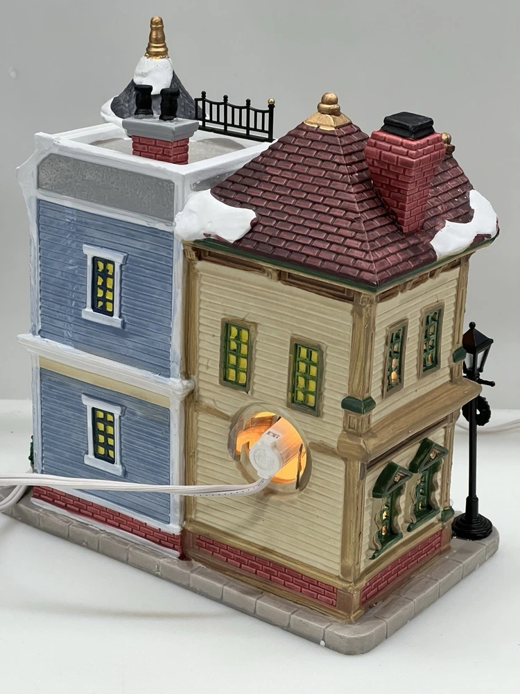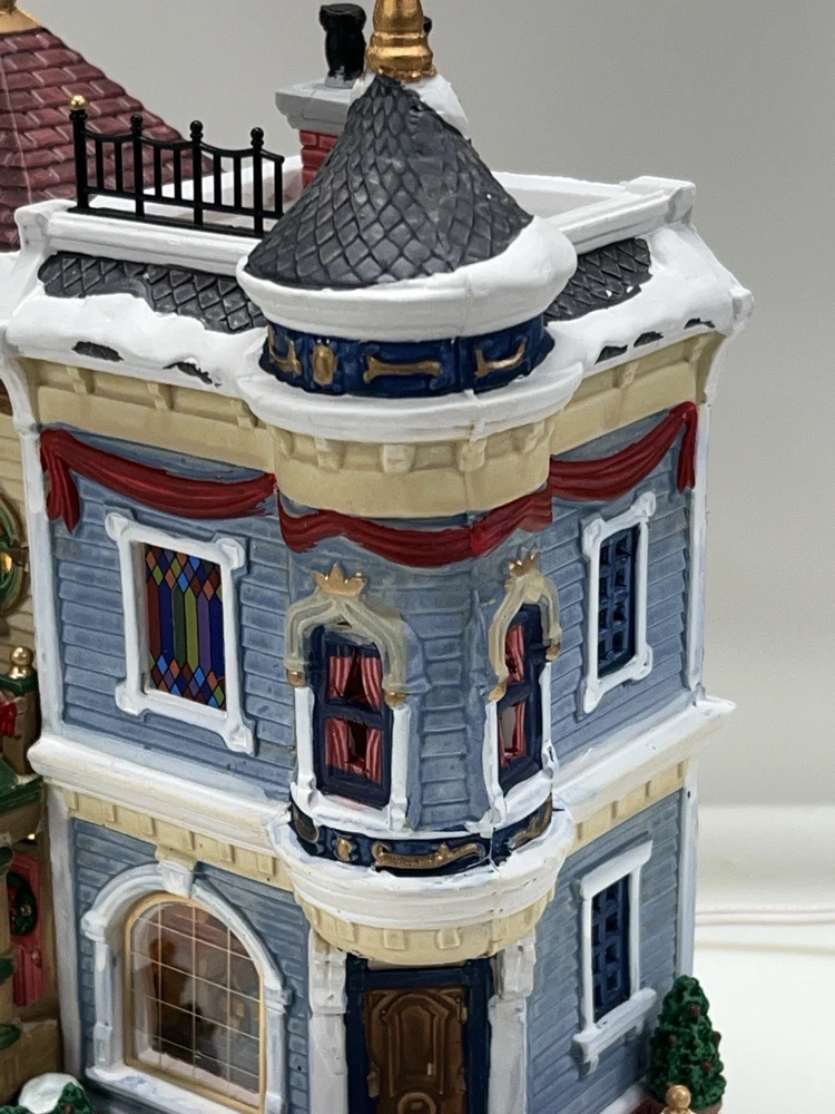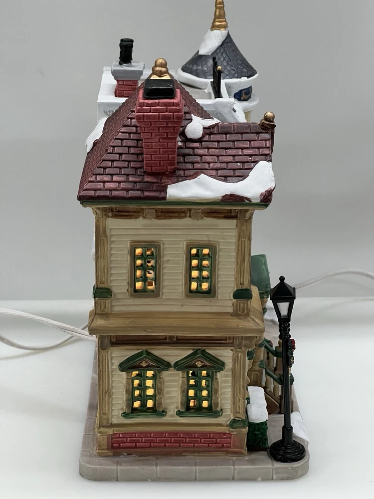 This is a beautiful Lemax "Christmas In The City" 25th Year Anniversary Lighted Building. It features a whimsical Victorian home with hand-painted details and a multicolor finish. The asymmetrical building is illuminated to create a 3D effect, making it a perfect addition to any Christmas village display. This large porcelain piece is boxed and retired, making it a great collector's item. It was manufactured in 2018 in China and is suitable for adults. The building measures 9" in height, 8" in length, and 5" in width. It is an original piece from the 21st century (2000-Now) and is part of the Lemax Christmas In Just a beautiful piece to add to your seasonal village. Comes with all clean original packaging including cord & light . Note : one section of small black fencing missing on roof top otherwise excellent pristine condition.