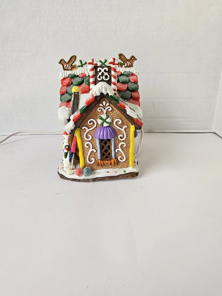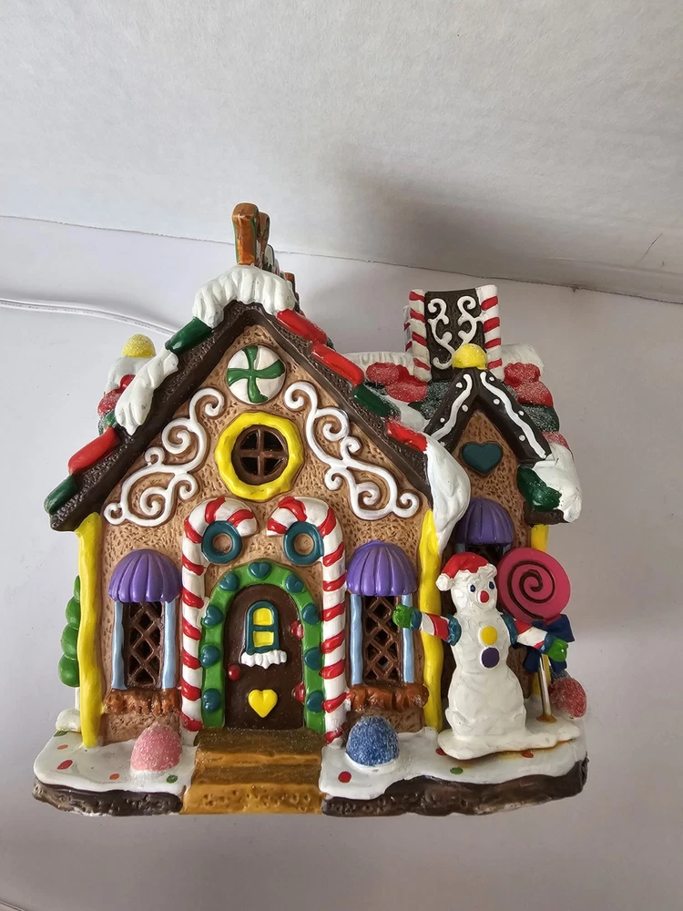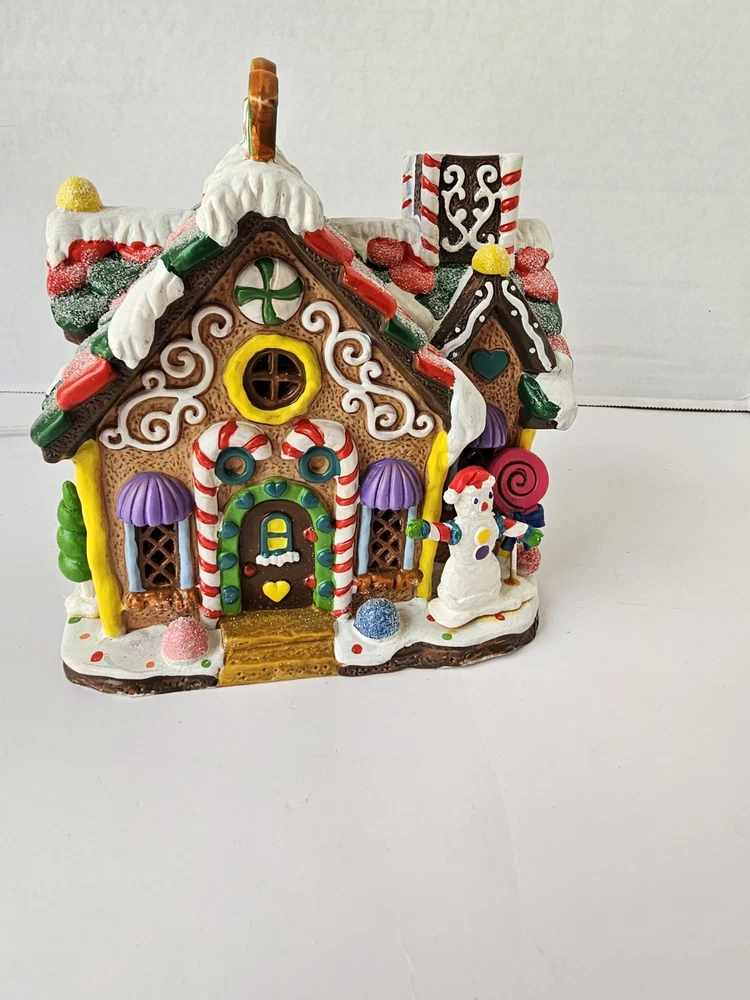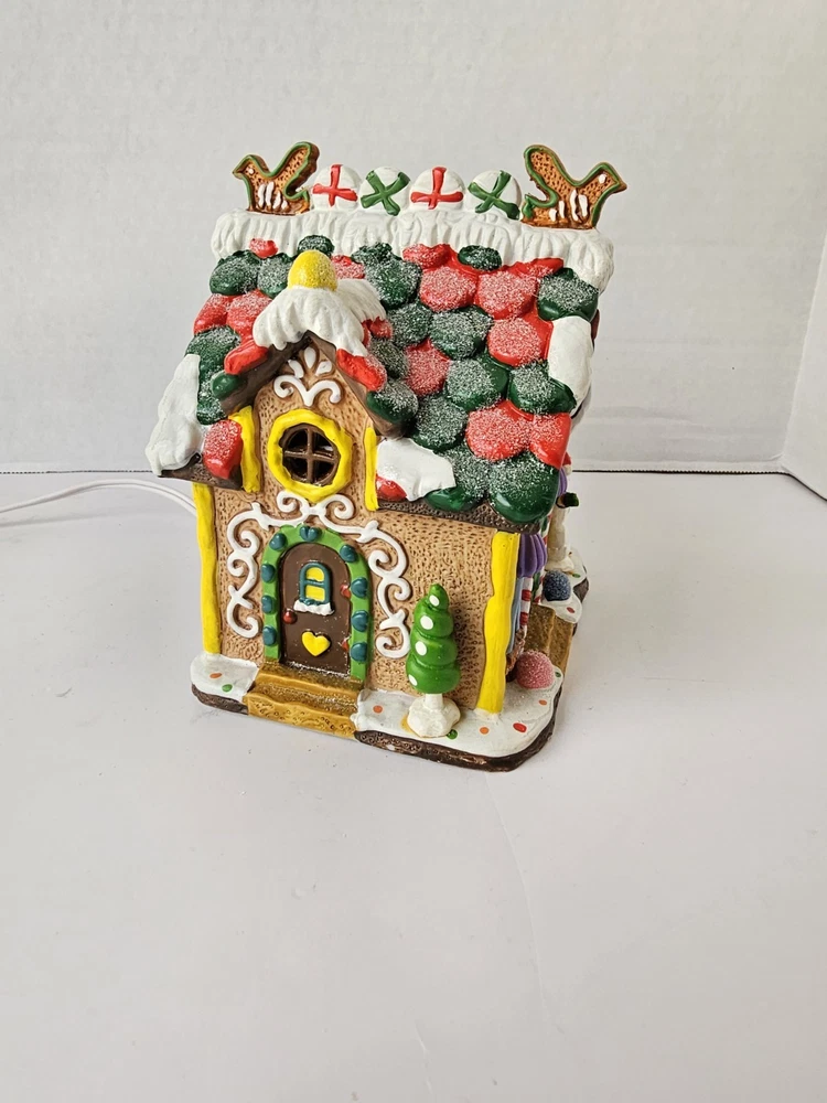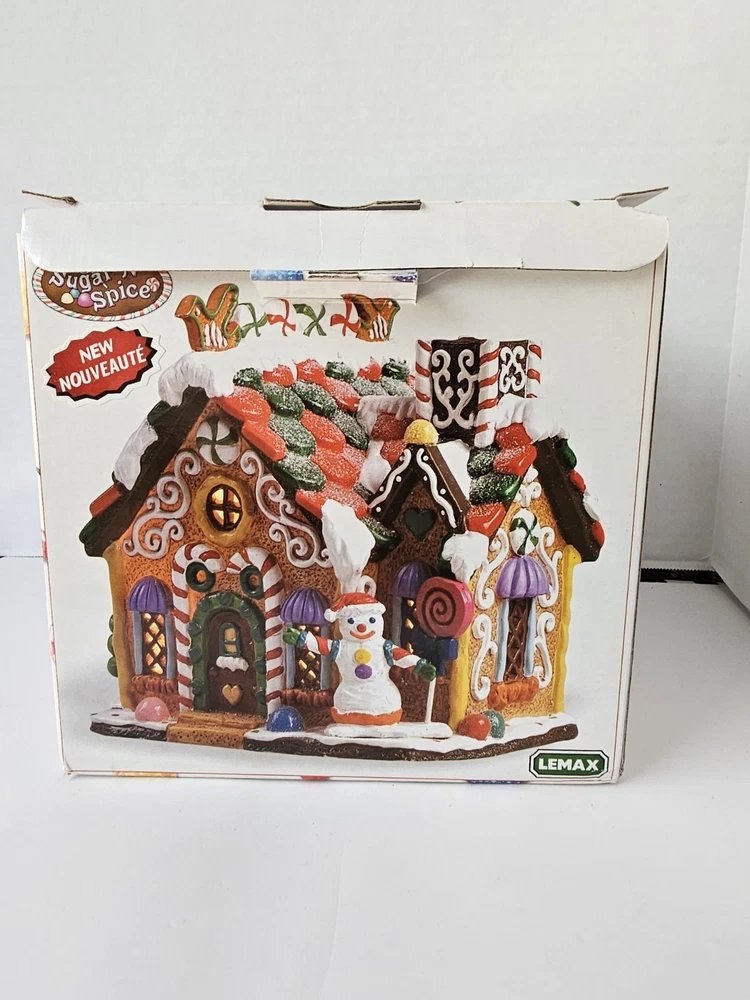 The Lemax Christmas Sugar N Spice 2005 The Sugar Shack is a collectible ceramic and porcelain house from the Sugar & Spice collection. This illuminated village building features a multicolor design, making it suitable for a Christmas village display. With its limited edition status and original box, this retired piece adds a charming touch to any room during the holiday season. Standing at 6 inches tall and 4 inches wide, this house is a nostalgic addition to any collection of seasonal decor. Used vintage condition pre-owned.