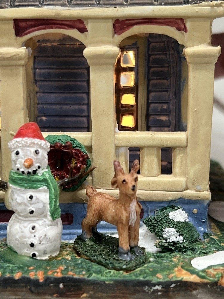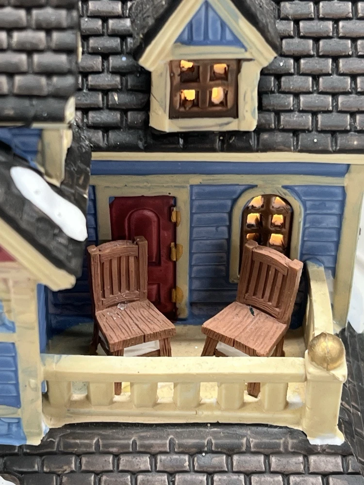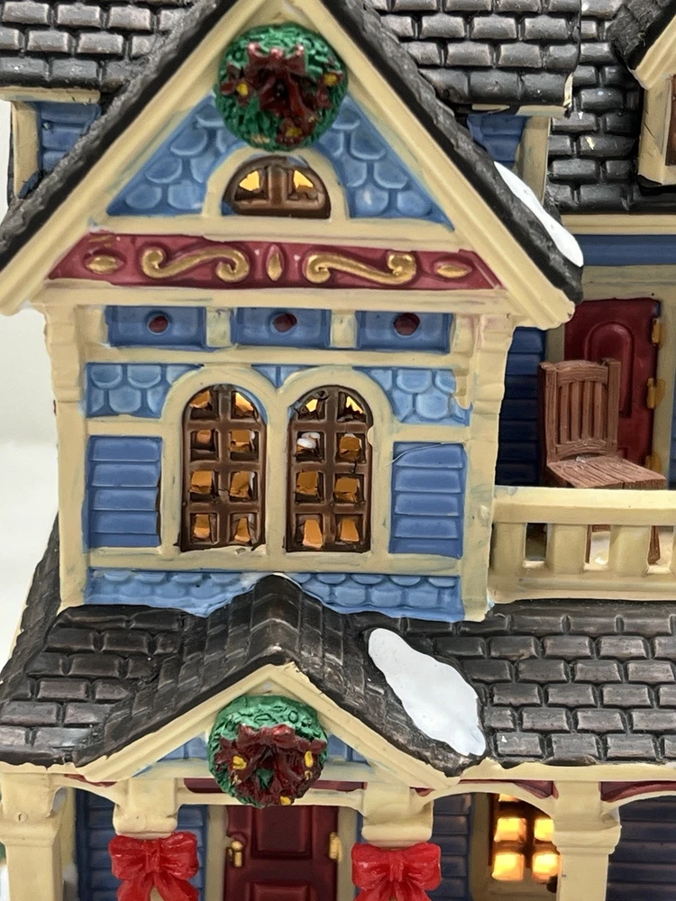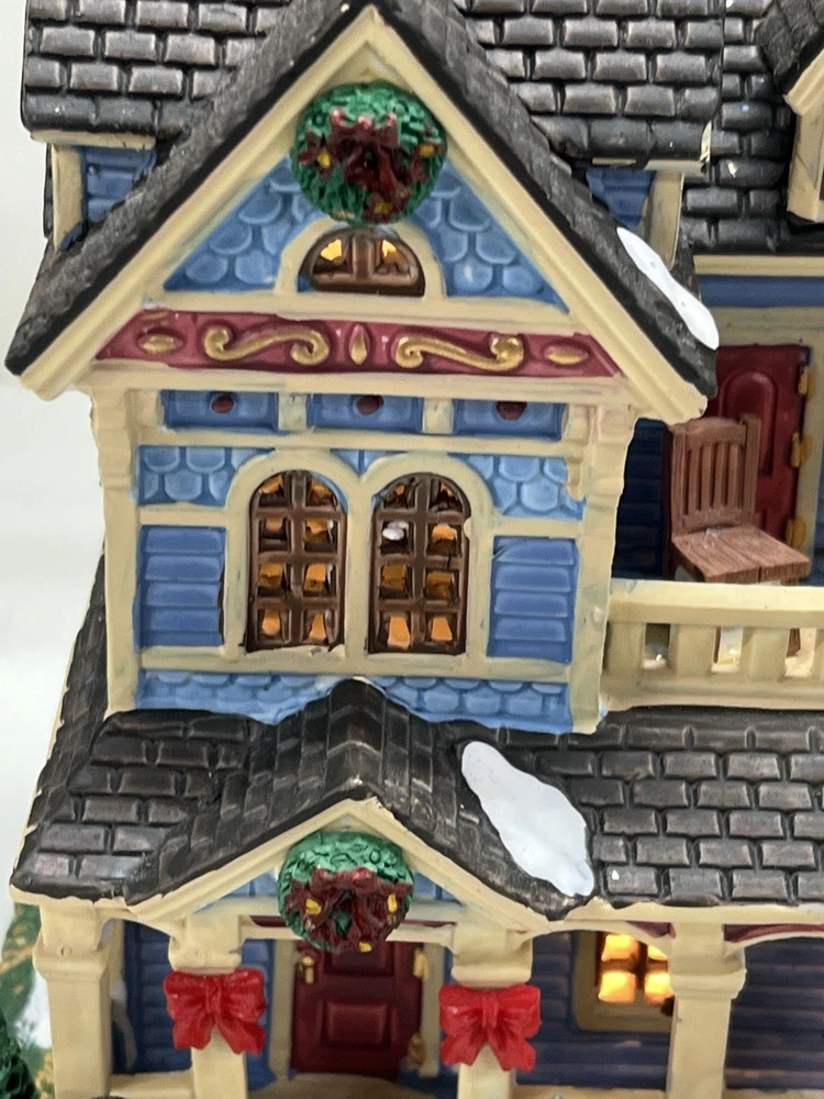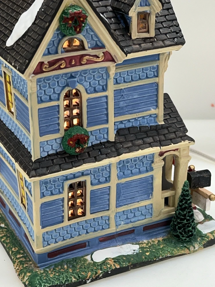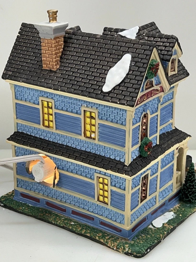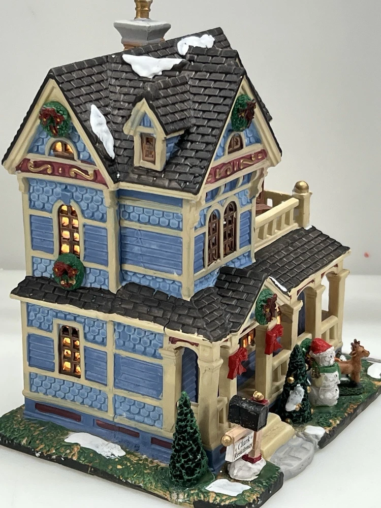 The Lemax "Clark Residence" Porcelain Lighted House is a charming addition to any Christmas Village display. This traditional-style house, featuring intricate carvings and illumination, is crafted from porcelain and measures 7" in length, 8" in height, and 5-1/2" in width. The multicolor finish and all-occasion appeal make it suitable for teens and adults alike. This collectible item, part of Lemax's Village collection, captures the essence of the 21st century with its original design and seasonal theme. Perfect for decorating any room during the holiday season. Note : fissures on bottom of house is where the factory joined the two pieces together. I’ve seen this on many occasions and in no way does it impair the integrity of the piece . Comes with all original packaging including cord & light .