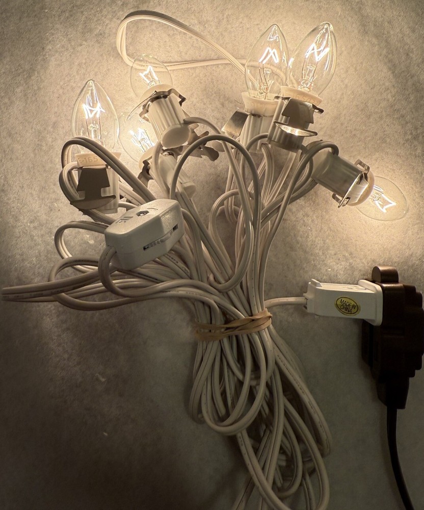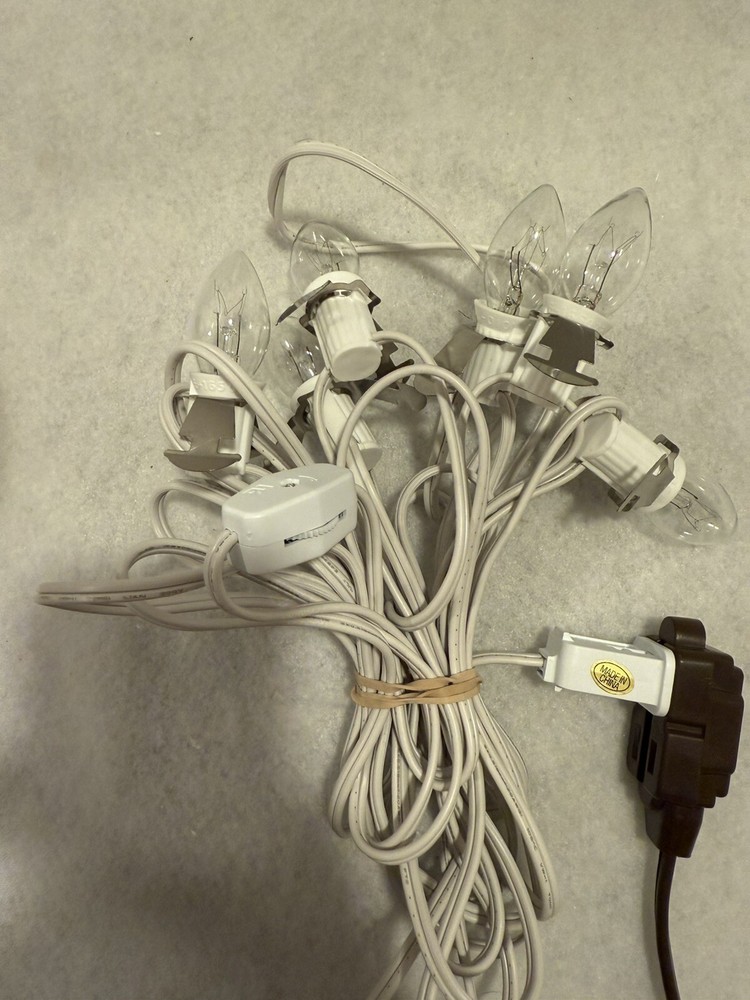 Bulbs are included, but no guarantee on life of bulbs as they are used. Please see pictures for full description. TESTED Dept 56 Village House Accessories 6 Socket Light Cord W/bulbs Set A14