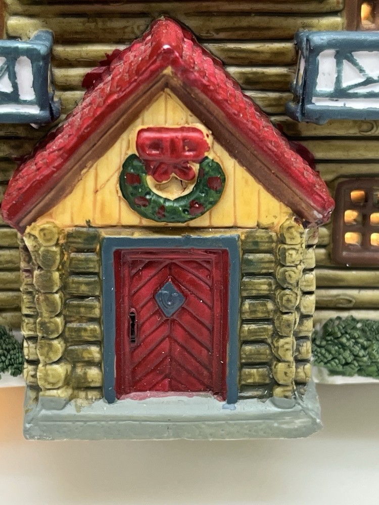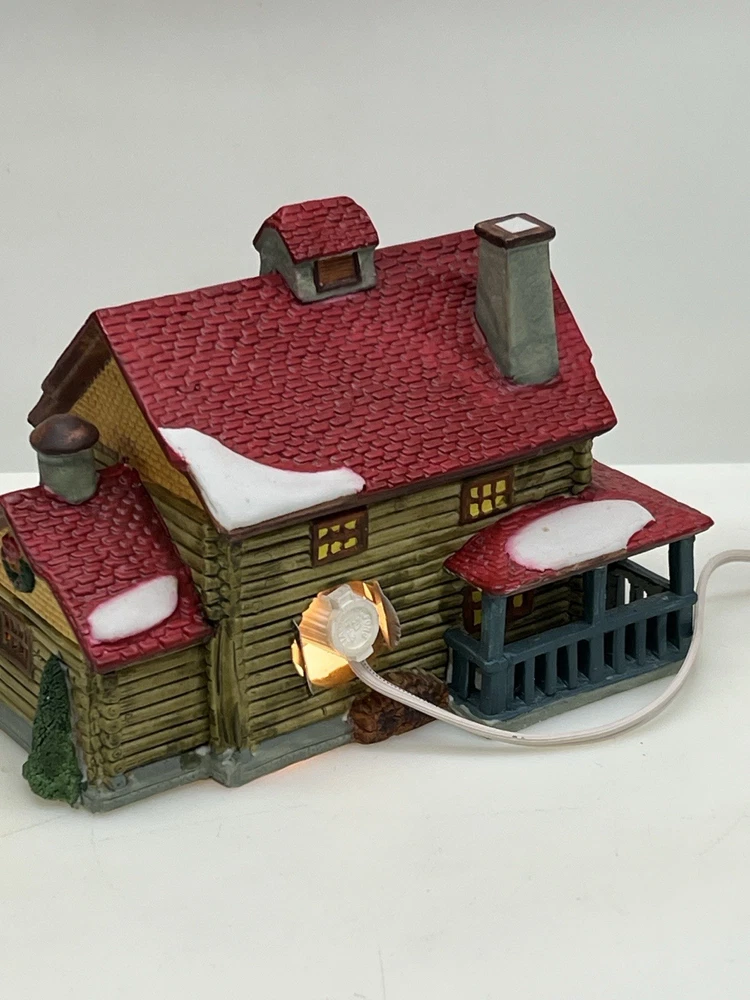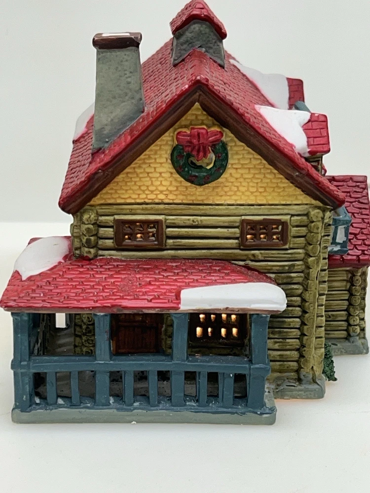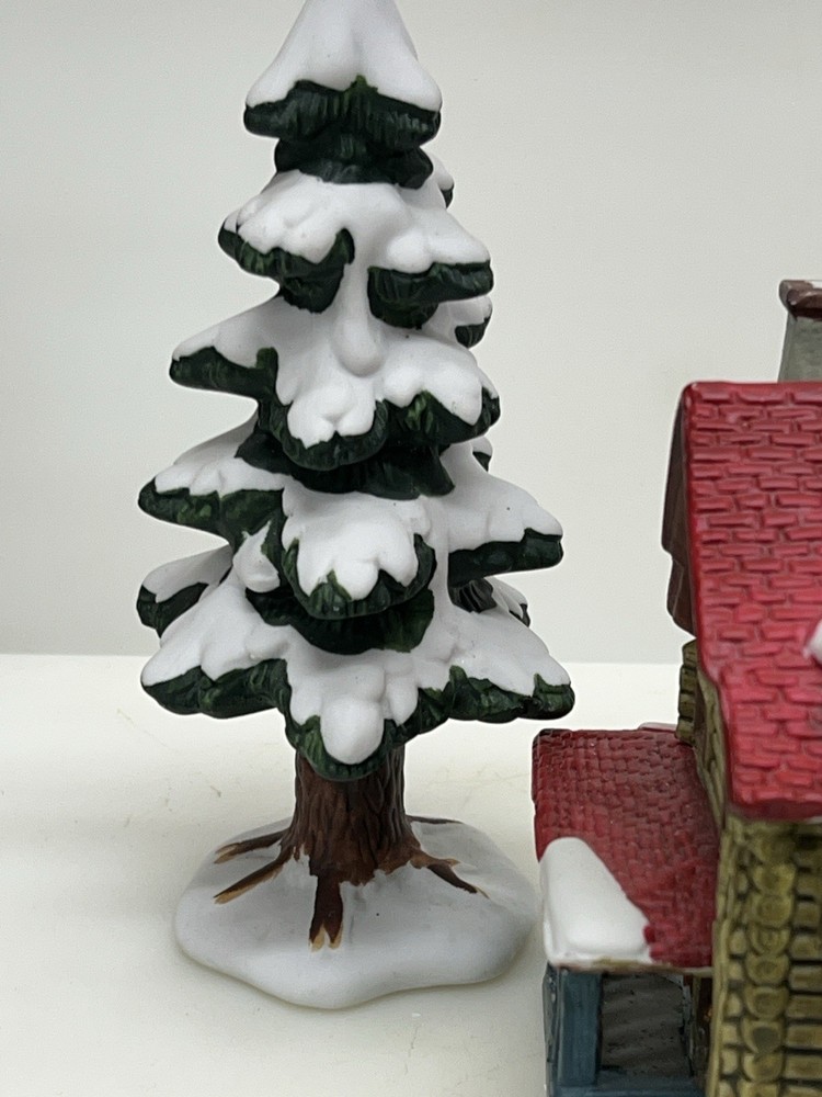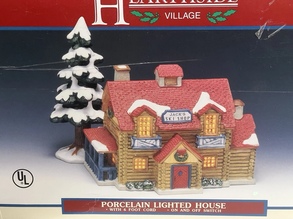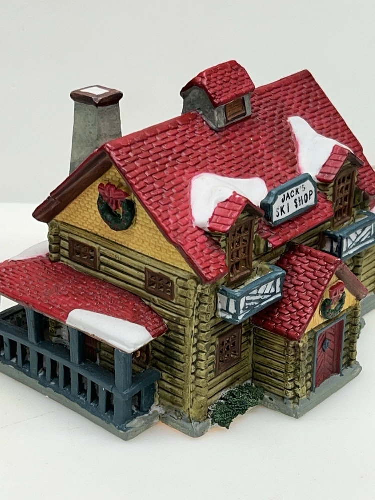 The Lemax Hearthside Village "Jack's Ski Shop" set of two retired 1995 pieces is a charming addition to any holiday or seasonal village display. This painted, illuminated ski house feature whimsical designs and are hand-painted with vibrant multicolor finishes. Made of porcelain and measuring 7 inches in length and 5 inches in height, these collectibles are perfect for adults and fit any room in the house during the winter season. With a nostalgic theme from the late 20th century, these pieces are a delightful and unique addition to your holiday decor collection. Perfect condition . Includes porcelain tree. Comes with all clean original packaging including cord and light. SouthCt